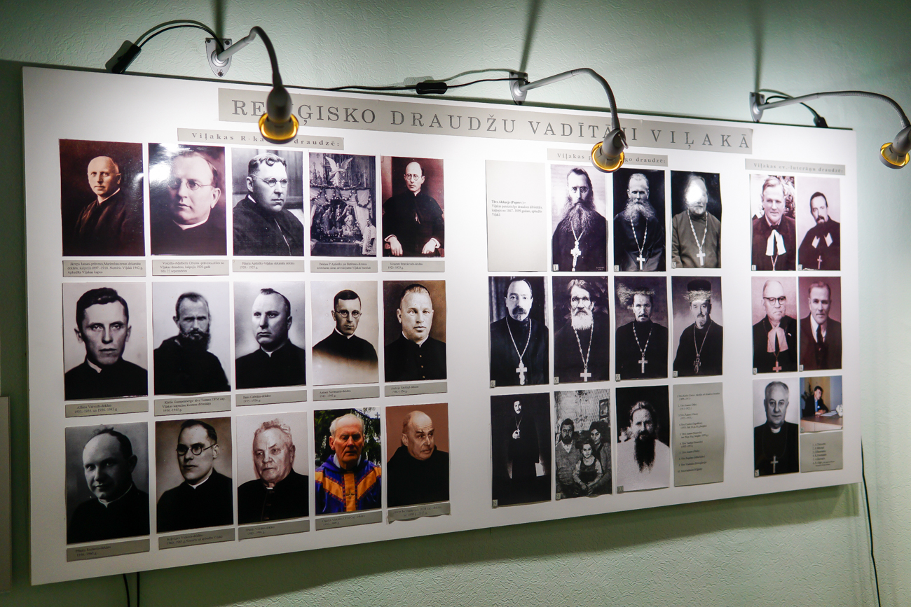 Religiskuo dzeive Viļakā vysod bejuse daudzveideiga – te ir kai Romys katuoļu, tai ari luteraņu i pareizticeigūs bazneica, pyrma Ūtruo pasauļa kara bejušys ari divejis sinagogys. Muzeja “boltajā ustobā”, kas veļteita nu Viļakys pusis guojušajim goreidznīkim, vysvaira līceibu atrūnams par veiskupim Kazimiru Duļbinski (1906-1991) i Valerianu Zondaku (1908-1986). Itūs prīškmatus muzejam duovuojušs jūs tyvinīki. Eipašs stuosts ir par Duļbinskam pīderiejušu skreineiti, kas taiseita nu finera. Tamā jis, byudams izsyuteits iz Sibireju par pretpadūmu literaturys izplateišonu, globuojs svātbiļdis, rūžukrūni i mūceņu, vysdreižuok, izmontuojs tū ari Svātūs Mišu vadeišonā, kas, saprūtams, nabeja atļauts. Duļbinskis tū darejs slapanai, riskejūt ar tū, ka juo īslūdziejuma laiks varātu tikt pagarynuots, i pīruodūt, ka nikod nav pagaisynuojs sovu ticeibu. Muzejā eksponāts ari kofers ar īgravātu juo vuordu, kas pavadejs veiskupu izsyutejumā. 60. godūs Duļbinskis atsagrīze Latvejā, tok reabilitaceju sagaideja tik puora godu pyrma sovys nūīšonys myužeibā. Nav eisti zynoms, voi veiskups pats taisejs itū skreineiti, tok Rita Gruševa ir dīzgon puorlīcynuota, ka tai varātu byut.