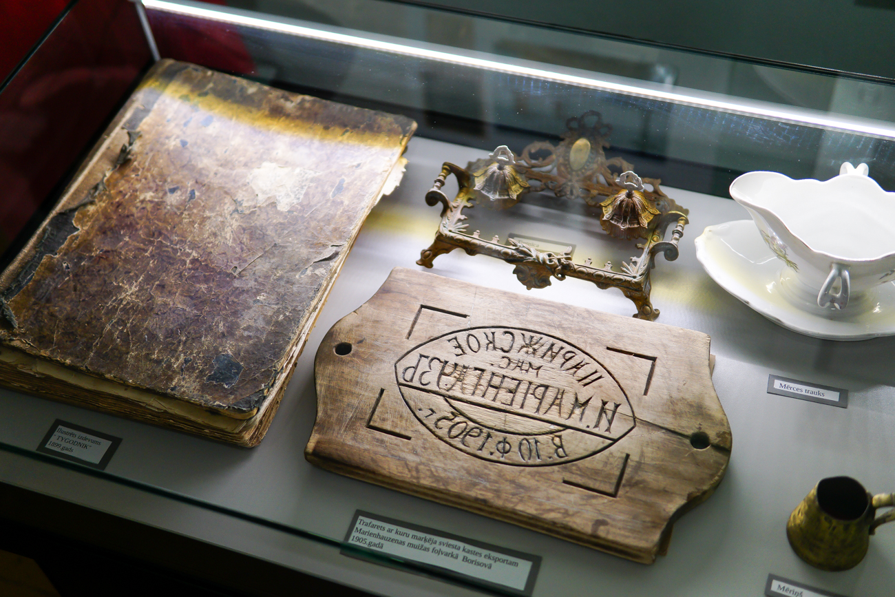 Marienhauzenys (Viļakys vacais nūsaukums) muiža sovulaik bejuse vīna nu treis leluokūs i ekonomiski spieceiguokūs Latgolā. Myusu dīnuos tū vaira navar apsavērt, jo muižys āka nūdadzynuota Latvejai zeimeigā datumā – 1918. gods 18. novembrī. Viļakys muzeja kruojumā ir vairuoki prīškmati nu muižys, tī apsaverami ari tuo viesturis ekspozicejā. Pīmāram, īšyuts grafīnis Lippis-Lipskys īcīneituo izdavuma vysa gods numeru komplekts, tintineica, kas atrosta azara krostā (īspiejams, kaids beja nūzadzs muižys dadzynuošonys laikā i piečuok īsvīds azarā, kab nūglobuotu), mērcis trauks, miereņš aba čarka. Tok eipaši Rita Gruševa izceļ trafaretu, ar kurū foļvarkā Borisovā, kas beja vīna nu Marienhauzenys muižai pīdarūšūs pusmuižu, markēja svīsta kastis eksportam. Kotrai foļvarkai beja sova nūsadorbuošona, pīmāram, taiseja ceglus voi styklu. Borisovā turēja lūpus (vaira par 100 malnraibūs gūvu i 16 dorba zyrgi) i taiseja svīstu, kū eksportēja iz vysu Krīvejis impereju, i kriejumu. Konkretais trafarets datāts ar 1905. gods 10. februari. Tū muzejam izduovuojs jau pīmynātais nūvodpietnīks, školuotuojs Juoņs Laicāns.