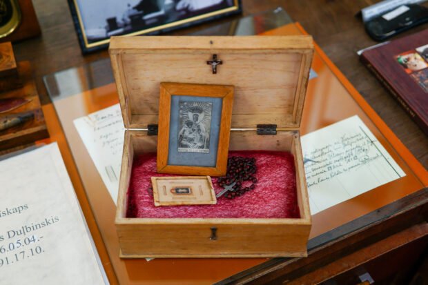 Svīsta kastis trafarets, karagiustekņu skreine i veiskupa Duļbinska montuojums – Viļakys muzeja kruojuma duorgumi