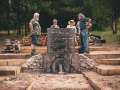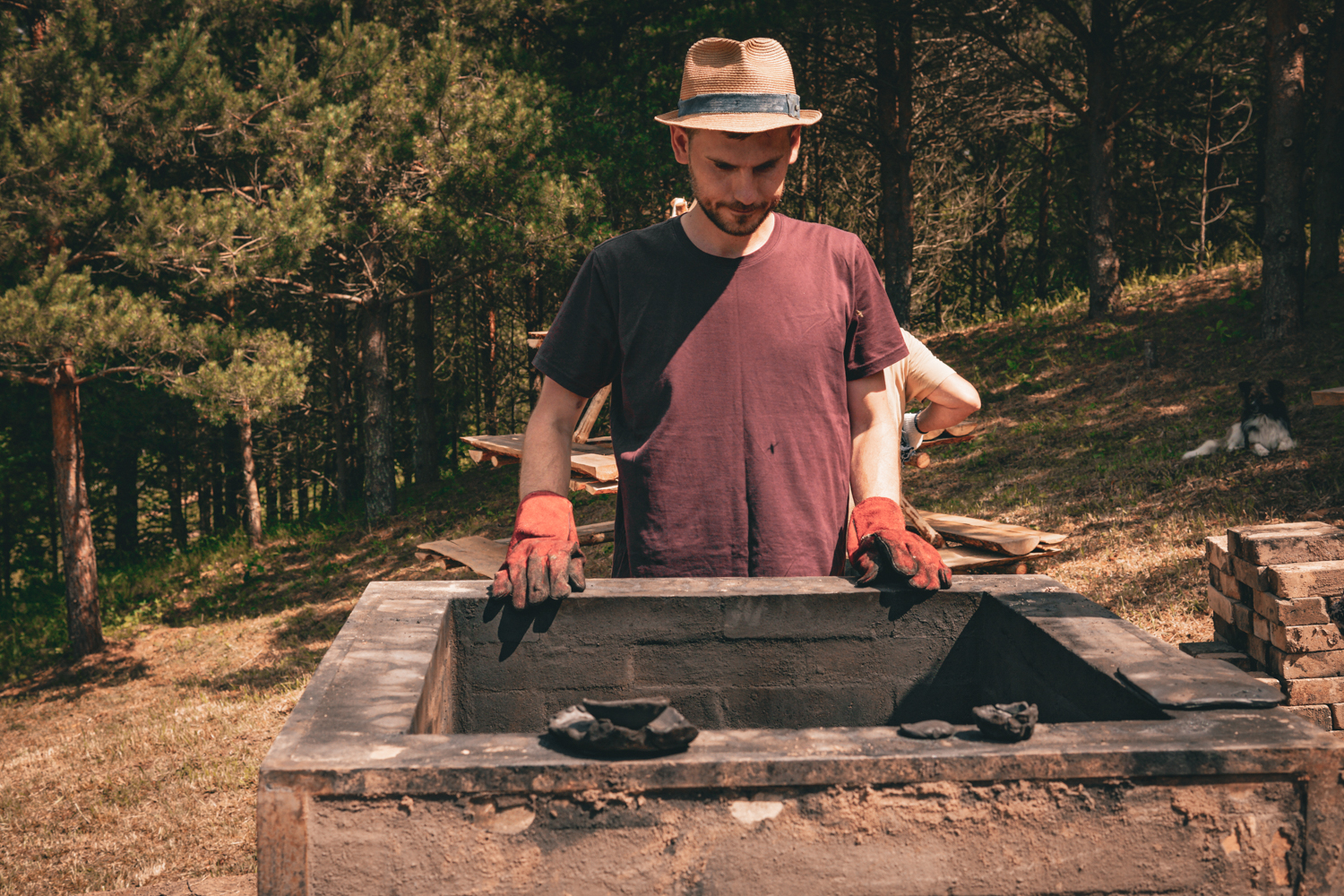 “Saiminīki nu sovys pusis te jau beja sagatavuojuši pamatu i vītu cepļa byuviešonai, kod es atbrauču, varēju par reizi suokt myurēt, Imants pat ar leimiņruodi beja sagatavuojs cepļa greidu, iz tik gludys viersys es laikam vēļ nabeju lics ceglus,” stuosta Stanislavs Viļums.
