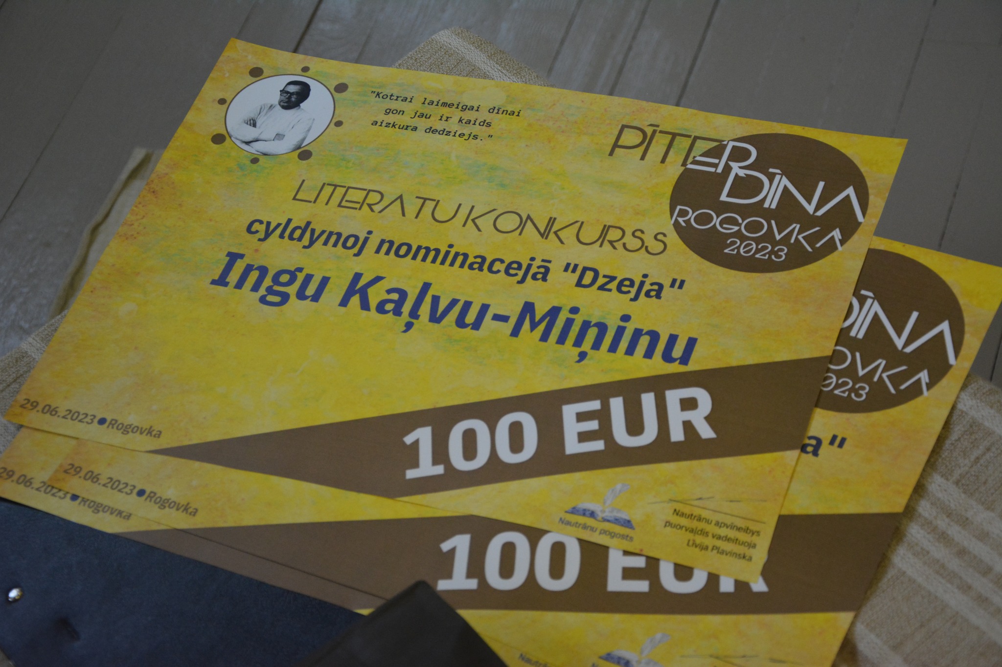 Literatu konkursa nūslāgumā tyka gūdynuoti kai laureati, tai izsaceitys pateiceibys par daleibu. Pateiceibys sajēme Veneranda Rimša i Rykovys jaunūs literatu kūpys “Dzejas garša” daleibnīki: Diāna Dimzule, Dace Vilcāne, Vasīlijs Krasnovs, Samanta Strogonova, Ketlīna Dukšta, Inga Strogonova, Dainuvīte Garjonova (vadeituoja Iveta Dimzule).