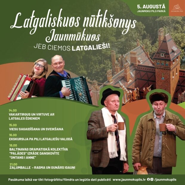 5. augusts Jaunmūku pilī Tukuma nūvodā byus eistyn latgalisks, partū ka iz kulturys i garšu svātkim Kūrzemē sabrauks gosti nu Latgolys. Byus Bolvu nūvoda Baļtinovys pogosta teatris “Palādas”, muzykanti nu Rēzeknis nūvoda Gaigolovys pogosta Rasma i Gunārs Igauni, taipoš ari vītejī amatnīki i tierguotuoji. Naiztikt ari bez latgaliskom garšom i Latgolai tradicionalīm iedīnim.