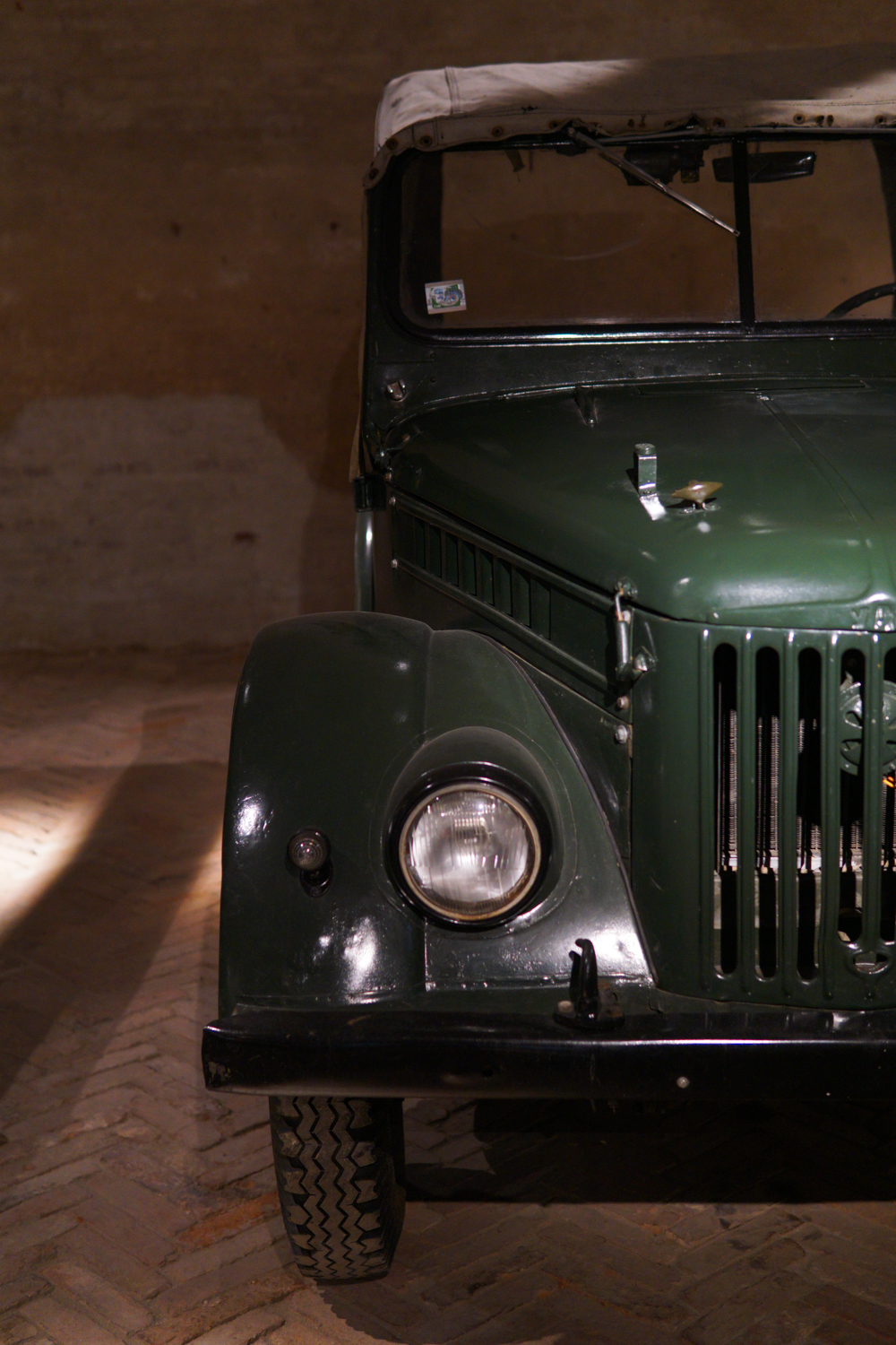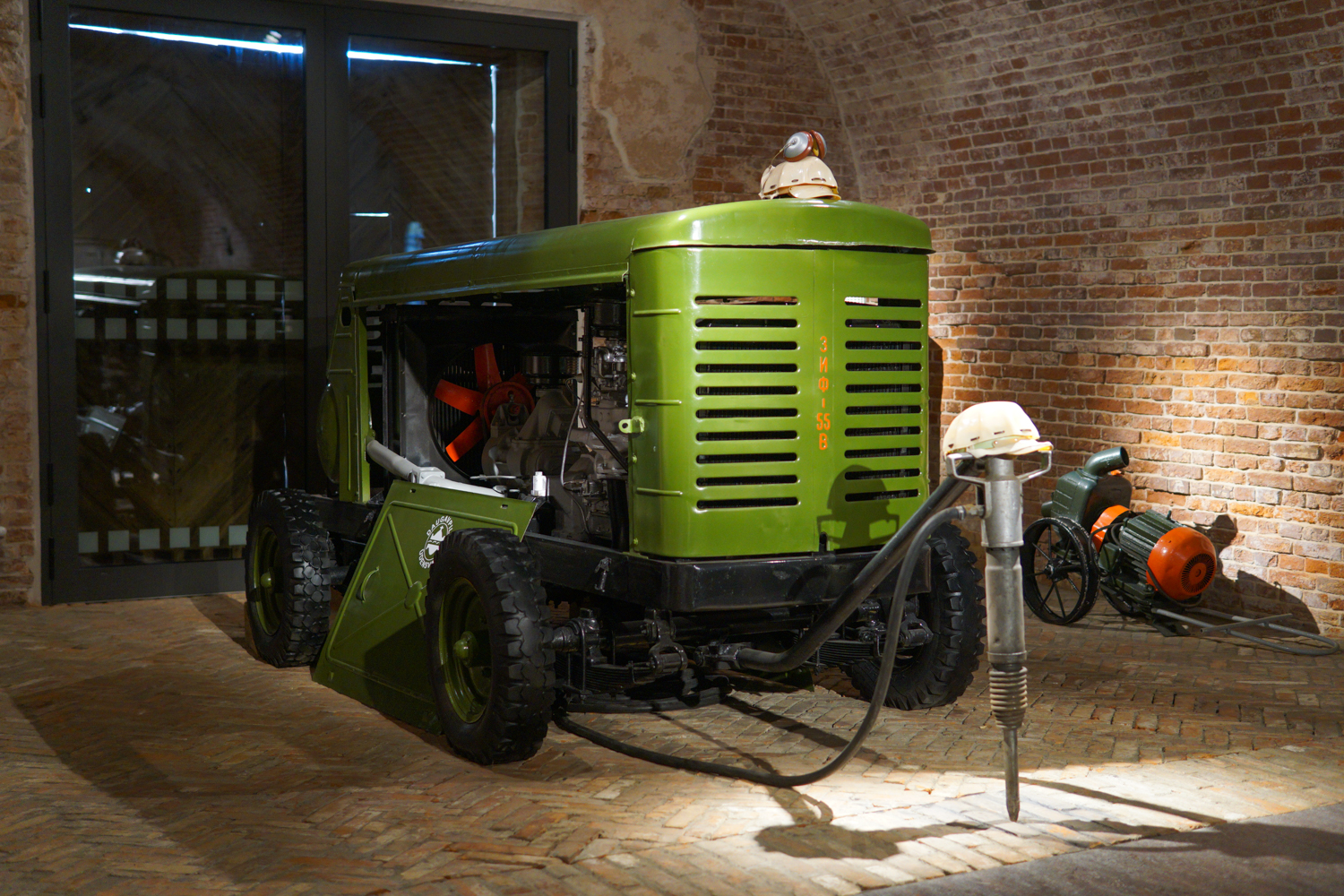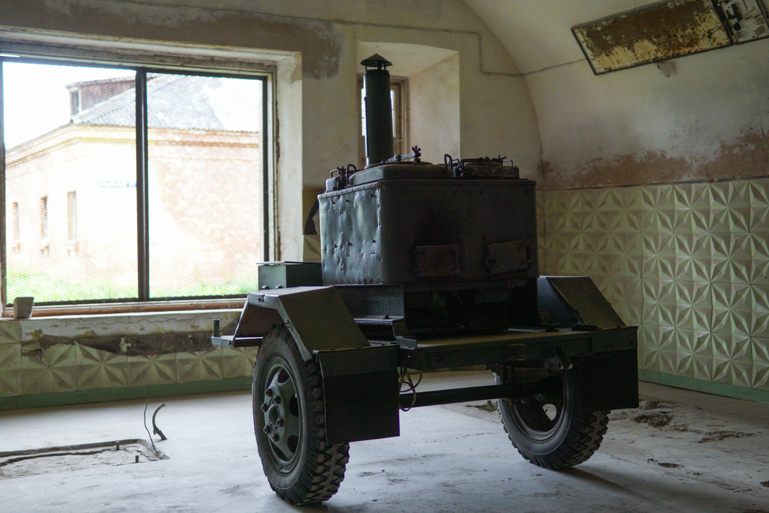 “Te, pīmāram, ir uotruos paleidzeibys mašynu ekspoziceja. Ite radzama mašyna nu Amerikys. Tok, ka atsasaukt taišni iz piļsātys viesturi, ite var apsavērt humanitaruos paleidzeibys mašynu nu Dānejis, taidys Daugovpilei tyka paduovynuotys vairuokys. Itei mašyna cīši patyka vysim darbinīkim, pasasokūt tuos jaudai, lobom spiejom izbraukt vysaidūs apstuokļūs, taipoš ari deļtam, ka itamā mašynā varēja stuovēt gondreiž pylnā augumā, PSRS ražuotyos mašynys beja daudzi zamuokys i naārtuokys,” stuosta Raitis Kikusts.