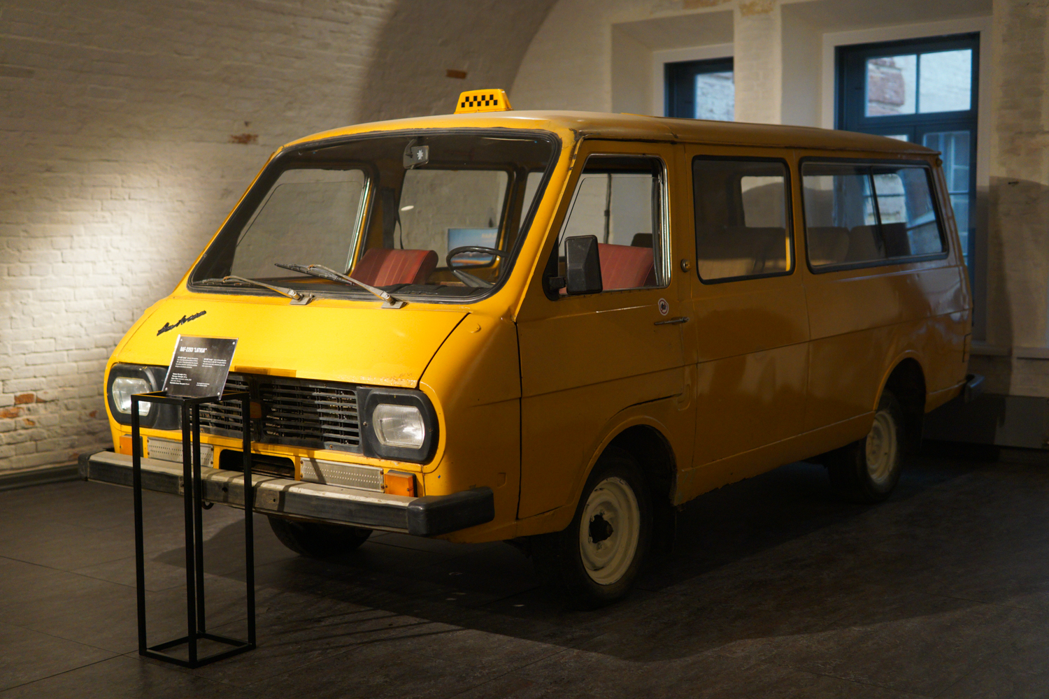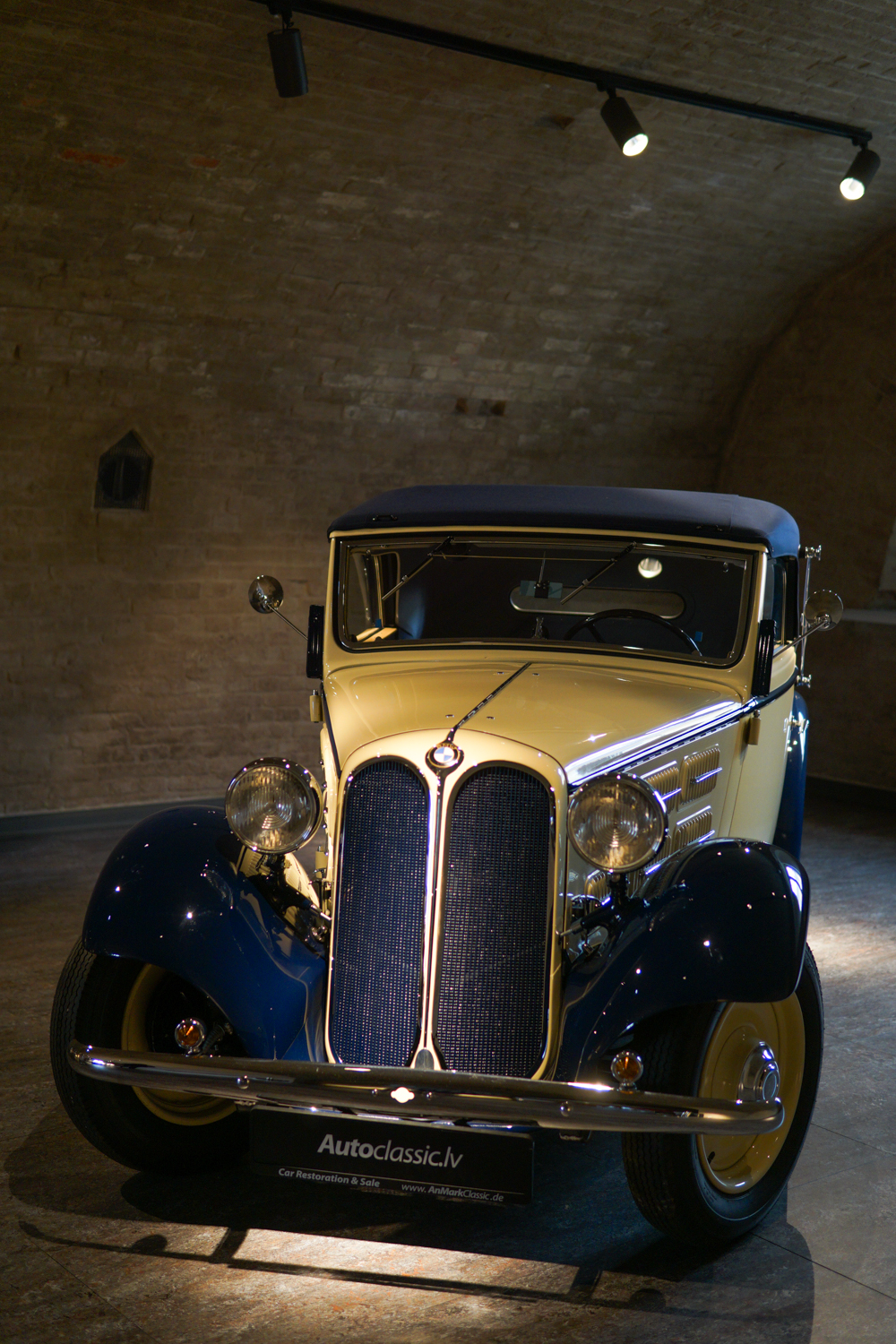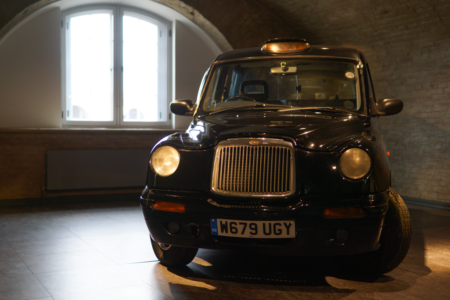 Nupat papyldynuotajā rītumu transportleidzekļu ekspozicejā var apsavērt daudzveideigus eksponatus. Te ir Mercedes, Rolls Royce, Jaguar, Aston Martin, BMW i cyti. Te ir ari unikala vareiba Daugovpilī apsavērt, kai izaver senejais angļu cab aba taksi. “Itei mašyna ir cīši puordūmuota, kai remonta, tai i puorsavītuošonys ziņā. Jū ir cīši vīgli salobuot. Vys tei ir ari cīši smoga mašyna, pat evakuators, kurs tū vede, beja puorsteigts. Mašynys pošmasa ir ap 2,5 tonnu.