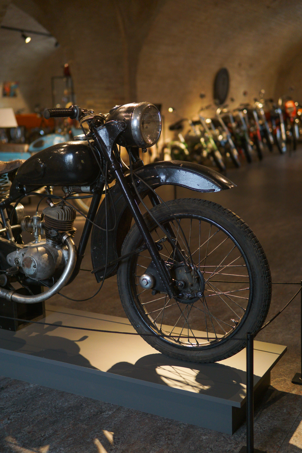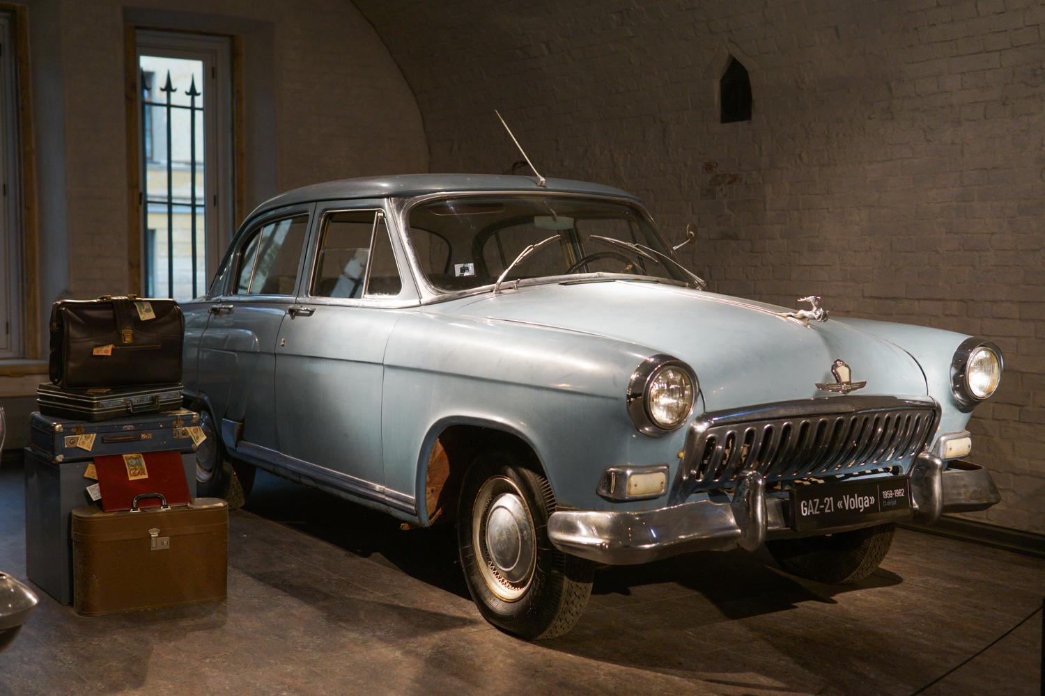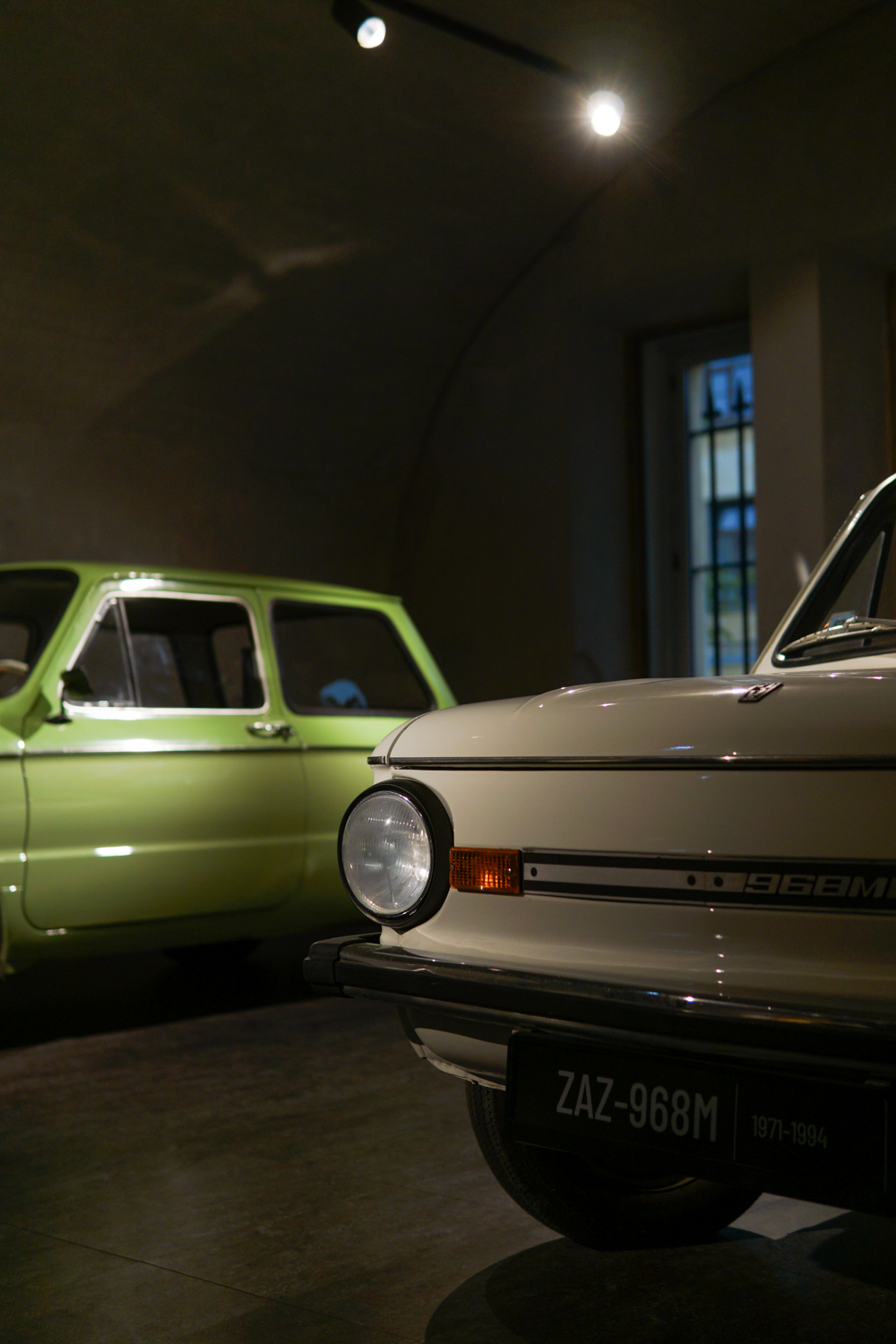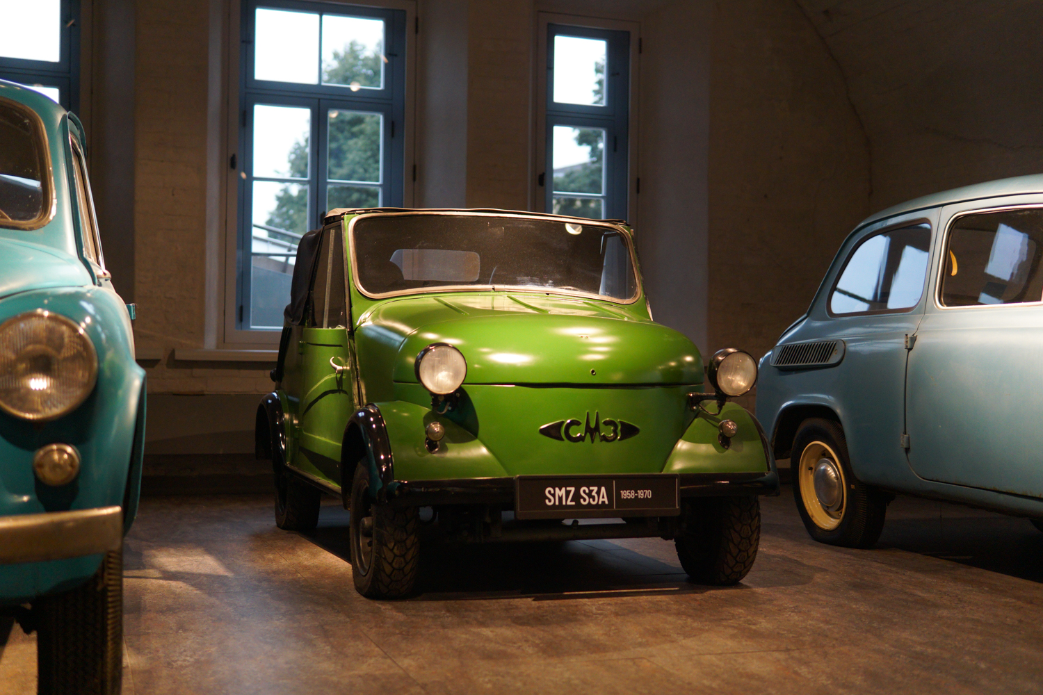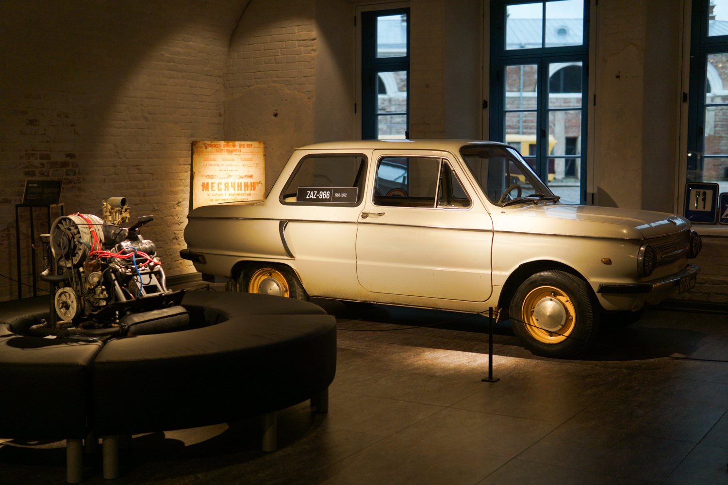 Īmūt tuoļuok iz padūmu laiku ekspoziceju, Raitis stuosta: “Te ir moskviču sekceja. Itys mums nu Rēzeknis sovā gaitā atrypuoja. Kod jis te tyka nūlykts, tam pat vēļ beja dereiga tehniskuo apskate. Ir ari jaunuoki moskviču modeli. Cyta storpā, itys ir unikals, partū ka tam iz sēdekļu atstuotys originaluos plēvis nu ryupneicys. Eipašnīks ar mašynu ir nūbraucs tik pīcys tyukstūšys kilometru. Sovpus itys, kaiba nikas eipašs, vys tys ir duorguokais moskvičs itamā ekspozicejā, deļtam, ka tys ir eksporta modeļs, atsaškir ar tū, ka iz paneļa informaceja ir angliski i aizmugurē uzroksts “Moskvich”.