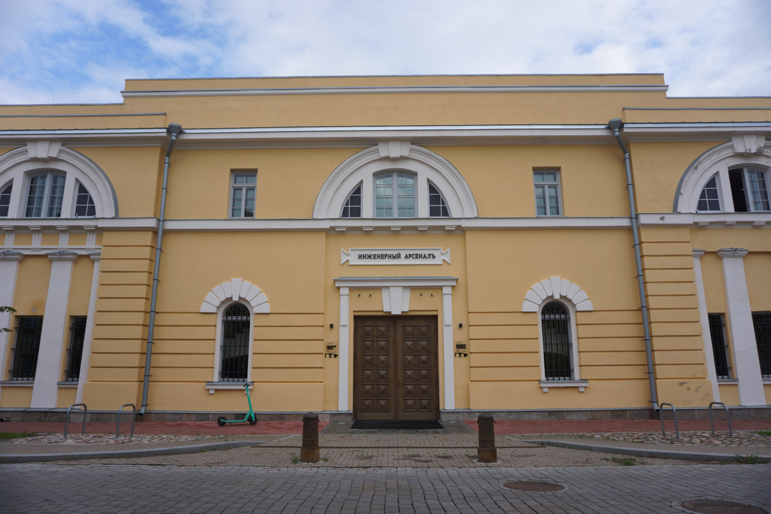 “Inžineru arsenals” ir diveju stuovu āka, kas calta nu 1840. da 1845. goda piec A. Štauberta projekta. Āka ir vaļsts nūzeimis arhitekturys pīmineklis. Kai stuosta presis specialists Aleksandrs Cvetkovs, padūmu laikūs “Inžineru arsenals” tyka stypri puorplānuots, vairuokuos vītuos tyka izbyuvātys sīnys, kur piec viesturiskūs planu tom navajadzēja byut. Kai nu telpu izbyuvis laika, tai i padūmu laikūs telpu pīlītuojums eipaši naatsškeire. Padūmu laikā arsenalā beja aviacejis škola i tai dasaisteituos darbneicys, kur školys audziekni kai vuiciejuos, tai i remontēja lidaparatus i cytys īkuortys.