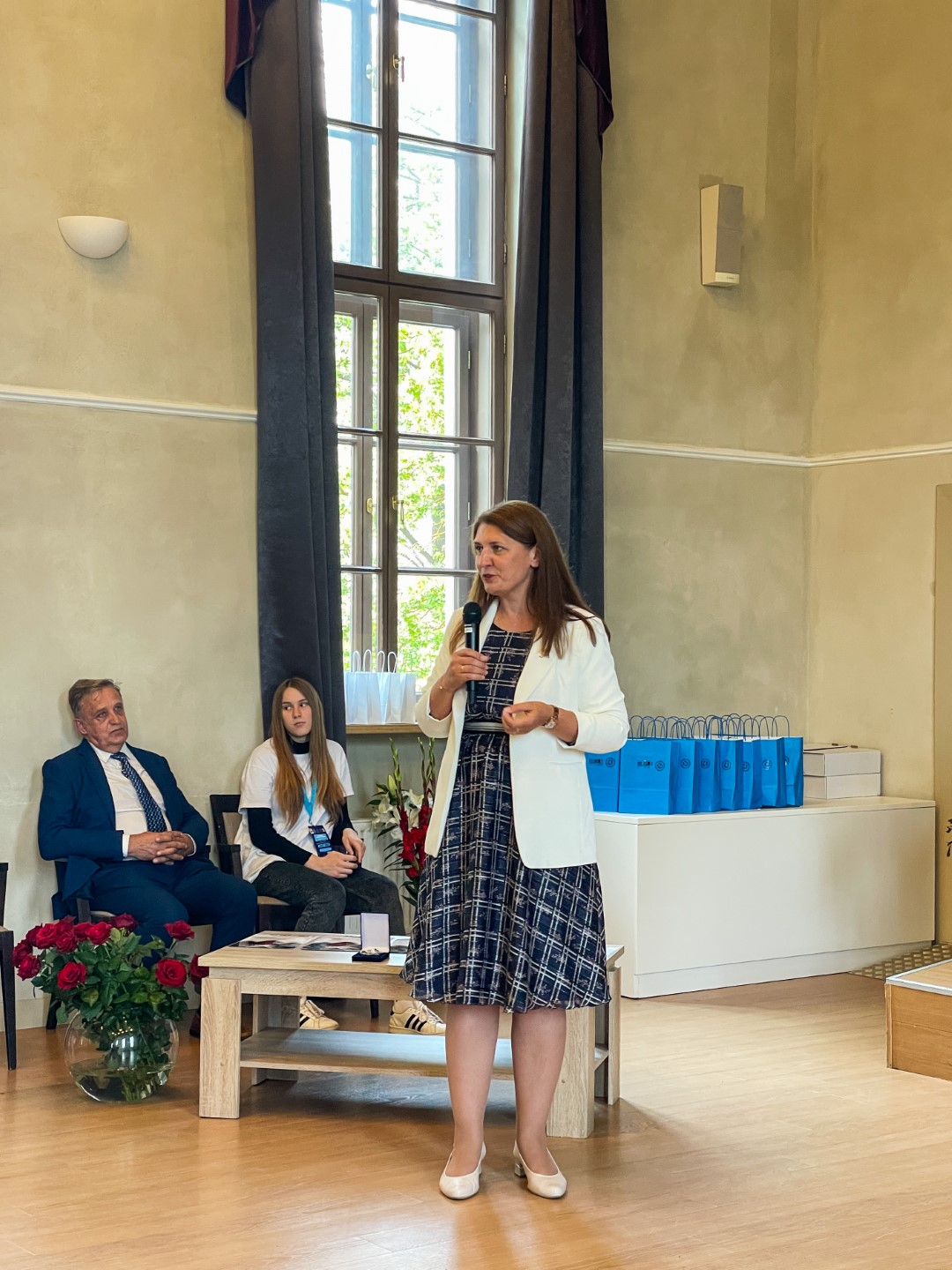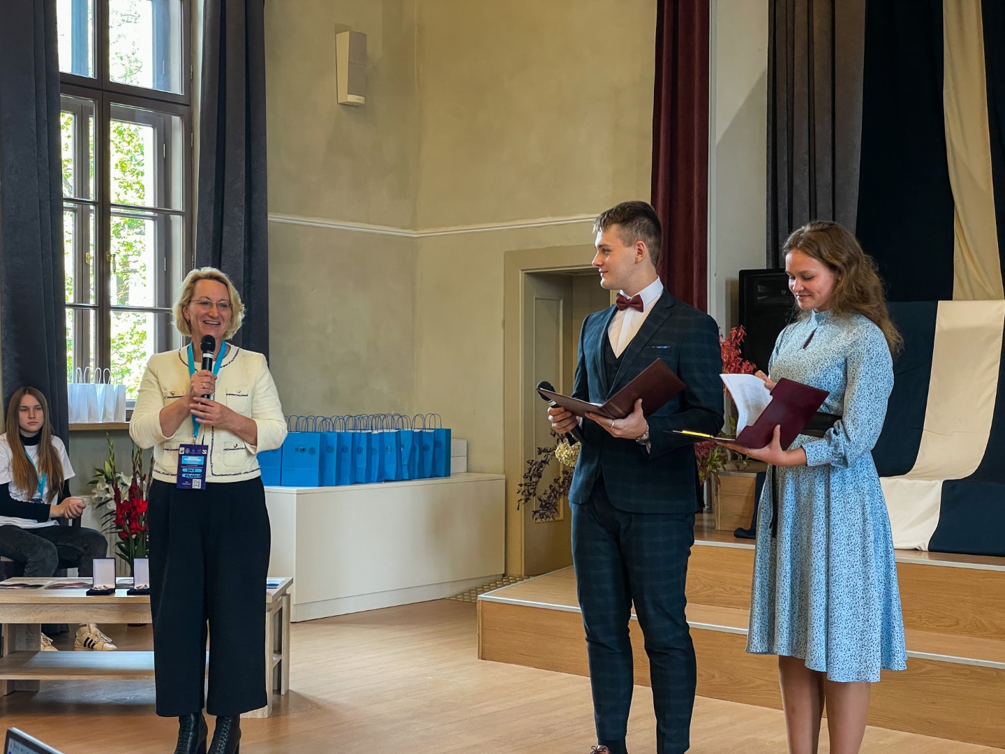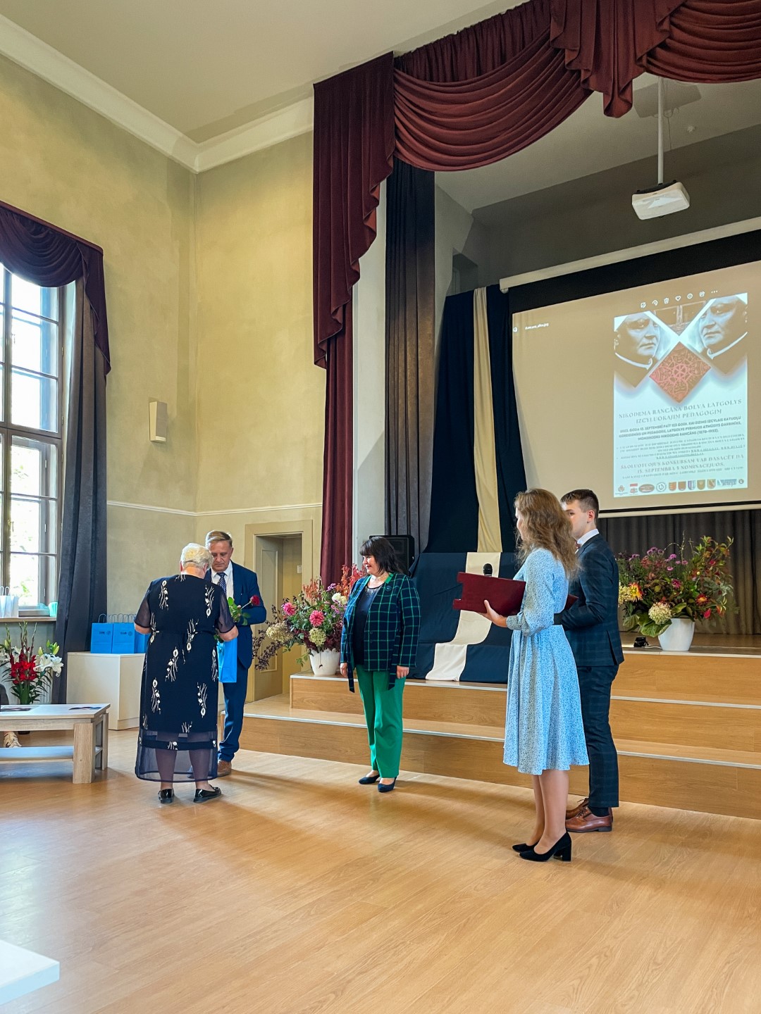 Nominacejā par rodūšu i psihologiski atbolstūšu pīeju vuiceibu ci studeju vidē bolvu sajēme Kruoslovys nūvoda Kruoslovys gimnazejis školuotuoja Ilga Stikute.