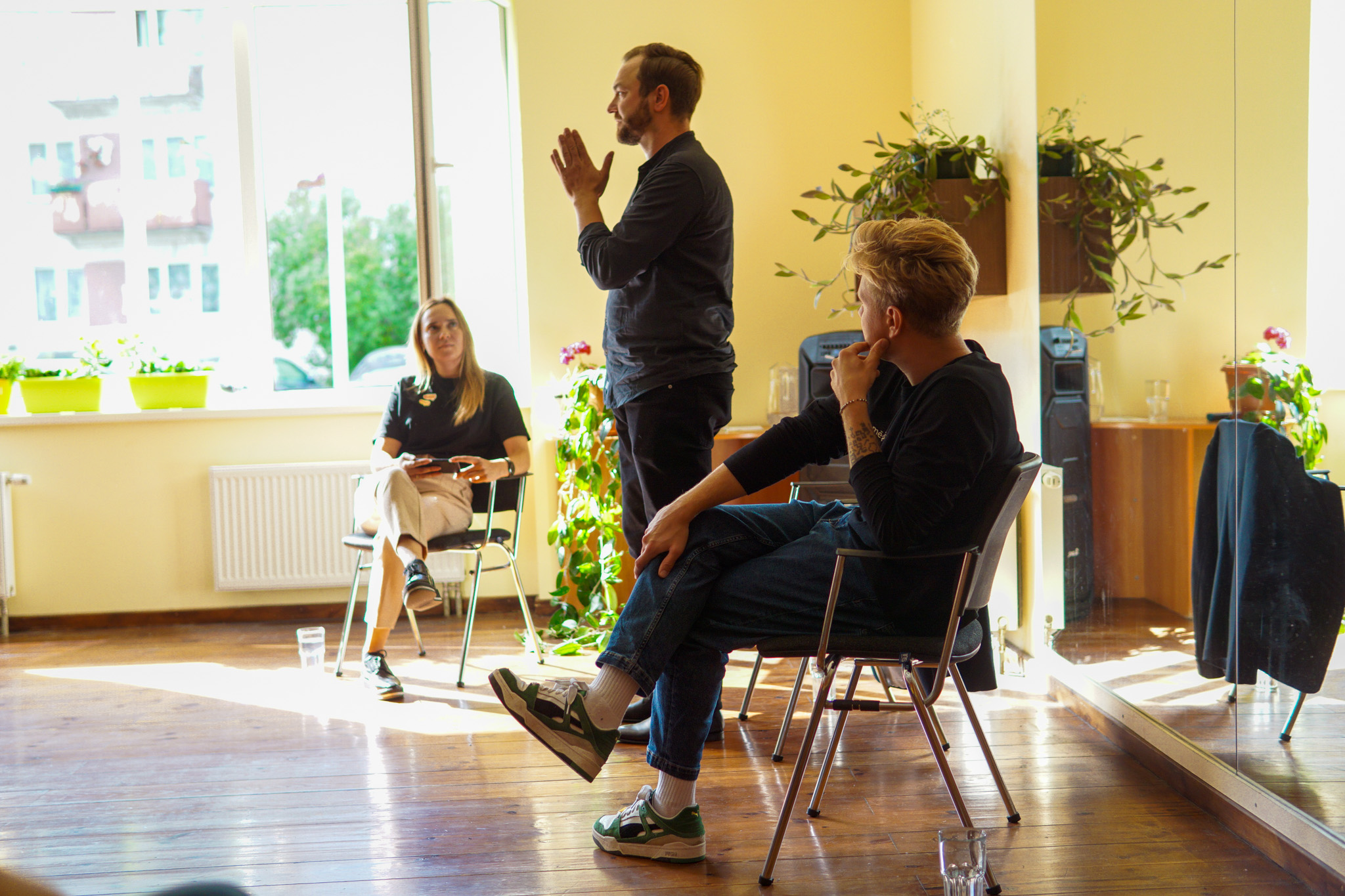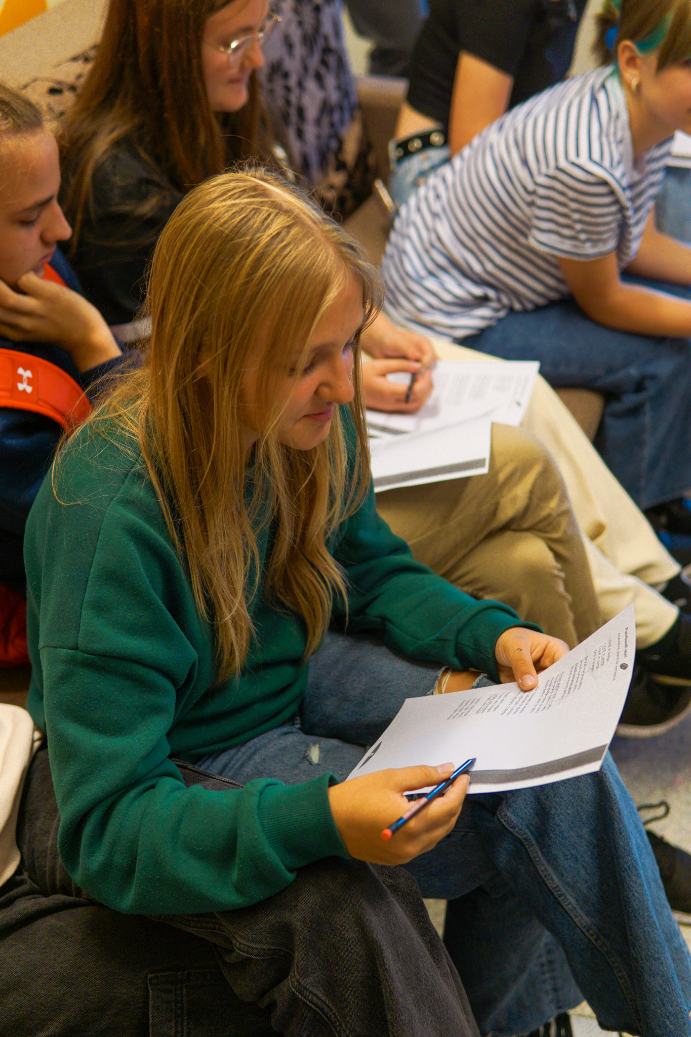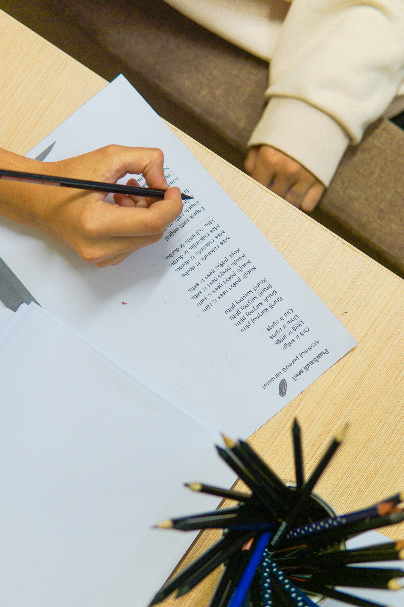 Projekta pādejais pasuokums, kura laikā beja vareiba sasatikt i pasarunuot ar muziki i akteri Kristapu Rasimu i radejis DJ i socialūs kontu puorvaļdeituoju Lauri Zalānu, pulcynuoja aptyvai 70 jaunīšu. Pasuokums beja sadaleits vairuokuos daļuos – nu suoku kūpeiga diskuseja ar Kristapu i Lauri, kurys laikā jaunīšim beja vareiba aizdūt tim interesejūšus vaicuojumus, sovpus piec diskusejis jaunīši kūpā ar Kristapu i Lauri devēs piļdeit aizdavumus treis dažaiduos centra “Kvartals” vītuos. Tī beja golda spēlis “Čipierksneits” vaicuojumi, aizdavums atminēt latgaliskus vuordus voi puorskaiteit i pīraksteit tekstu latgaliski. Vystik Mareja pīzeist, ka gona daudzi jaunīši vyspuor nazyna latgalīšu volūdu, deļtam ir svareigi saglobuot balansu storp latgalīšu i latvīšu volūdom, kab jaunīts nasajustu naārtai, ka vysa pasuokuma garumā navar izsekuot leidza i saprast vysu saceitū.