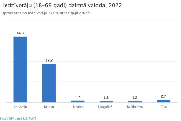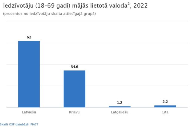 Centraluo statistikys puorvaļde (CSP) publicējuse 2022. godā taiseituo apsekuojuma “Pieaugušo izglītība” rezultatus. Tamā beja īkļauti ari vaicuojumi par dzymtū i sātys volūdu. Statistikys dati līcynoj, ka latgalīšu volūdu par dzymtū sauc 1,3 % Latvejis i 8,4 % Latgolys dzeivuotuoju, sovpus sātā latgalīšu volūdu lītoj 1,2 % Latvejis i 8,8 % Latgolys dzeivuotuoju.