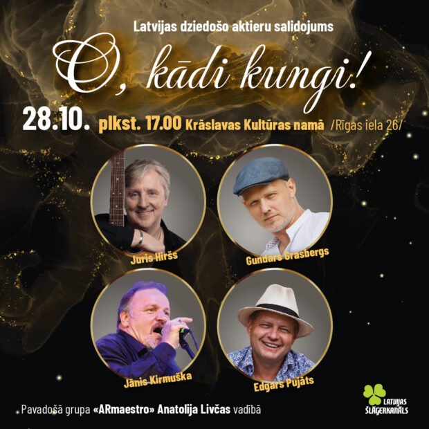 Tai kai Legendu nakts Kruoslovā itūgod plānuota kai lels pasuokums i muna pošys nedeļa paīt viņ dūmuos ap jū, deļtuo itūreiz vysi treis nedelis īsacejumi byus aicynuojums sastdiņ braukt gostūs pi myusu. Vīns nu īmesļu ir tys, ka sūpluok vysim stuostim i legendom, kas vokorā skanēs par Grafu Plateru pili, ir arī vokora koncerti. Vīnam vokoram asam saryupiejuši vasalus divejus koncertus – 17.00 stuņdēs aicynojam iz Kruoslovys Kulturys nomu, kur byus Latvejis dzīdūšūs akteru saliduojums koncertā “O, kādi kungi!”. Latvejis teatru akteri Jurs Hiršs, Gundars Grasbergs, Edgars Pujāns i Juoņs Kirmuška Anatolija Livča grupys “ARmaestro” pavadejumā nūvess kinu i teatra izruožu dzīšmu ceļuojumā. Bet 20.00 stuņdēs piļs staļūs skanēs baroka muzykys koncerts “Leģenda par satikšanos ar karali Sigismundu III Vāsu”, kas viesteis par Pūlejis-Leitovys vaļstsi i kūpeigū viesturi Latvejis teritorejā. Koncerta muzikis byus apsaviļkušs Fraņcejis kieninīnis Marejis Antuanetis laika kostimūs. Ka kaids gribēs, pyrma koncerta (nu 18.30 da 19.30) Kruoslovys Amatnīceibys centrā varēs pīsadaleit meistarklasē “Grāfa broša” i ari sev sataiseit nazkū volkojamu – stykla mozaikys rūtu – īsadesmojūt nu tūs laiku. Koncerti i cytys Legendu nakts nūtikšonys byus bez īīšonys moksys.