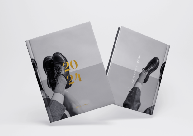 Sovpus, kai stuosta vizualizaceju autore Liāna Merņaka-Nikitina, ari itūgod plānuotuoja dizainā turpynojās 50 tūņu palākuos nūkruosys. “Itūgod es drupeit vaira miksieju fontus aba burtveidūlus, kuri varbyut nu suoku izaver, ka nasaskaņ, tok patīseibā cīši labi vīns ūtru papyldynoj. Tys ari labi atsasauc iz myusu ideju i ituo gods temu par draudzeibu i tū, cik draudzeibys var byut dažaidys, tys atsaspīgeļoj ari plānuotuoja fotografejuos. Uzklausūt cylvāku idejis nu paguojušuo goda, mes itūgod īvīsem ari vertikalu sadaļu, kur ir laika dalejums nu septeņu reitā da deveņu stuņžu vokorā,” stuosta vizualizaceju autore Liāna Merņaka-Nikitina. Jei ari dasoka, ka “Giut breidi” nav standarta plānuotuojs, kaidi vairumā dabojami veikalu plauktūs, jo ituo plānuotuoja autoris kai dizaina, tai i saturiskū daļu izstruodoj cīšā sadarbeibā, puorrunojūt kotru detaļu, uzklausūt īsacejumus nu plānuotuoja lītuotuoju i raugūt tū padareit piec vareibys ārtuoku kotram, kurs grib sovu laiku plānuot latgaliski. “Vēļreiz raugūt pastreipuot tū, cik unikals i naatkuortuojams ir itys plānuotuojs, mes itūgod ari asam īvīsušys atseviškys kreituotys lopys pusis ar interesantim tekstim, tuos varbyut nav dyžanys puormainis, tok roda cytys sajiutys. Taipoš kai nūtikšonys myusu dzeivēs, taipat ari ituos kreituotuos lopys pasaruoda nasistematiski – cyta mieneša vydā, cyta beiguos i tamleidzeigi,” stuosta Liāna Merņaka-Nikitina.