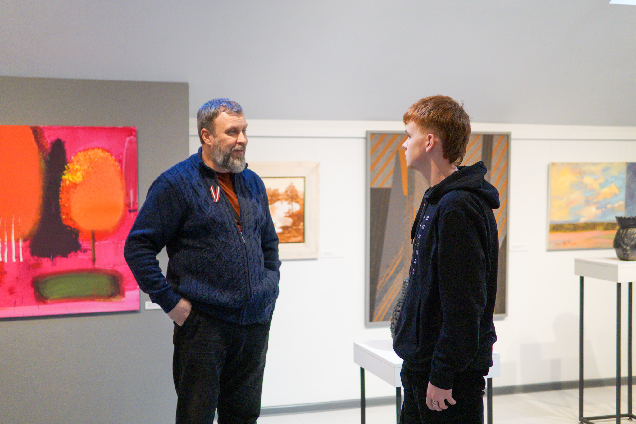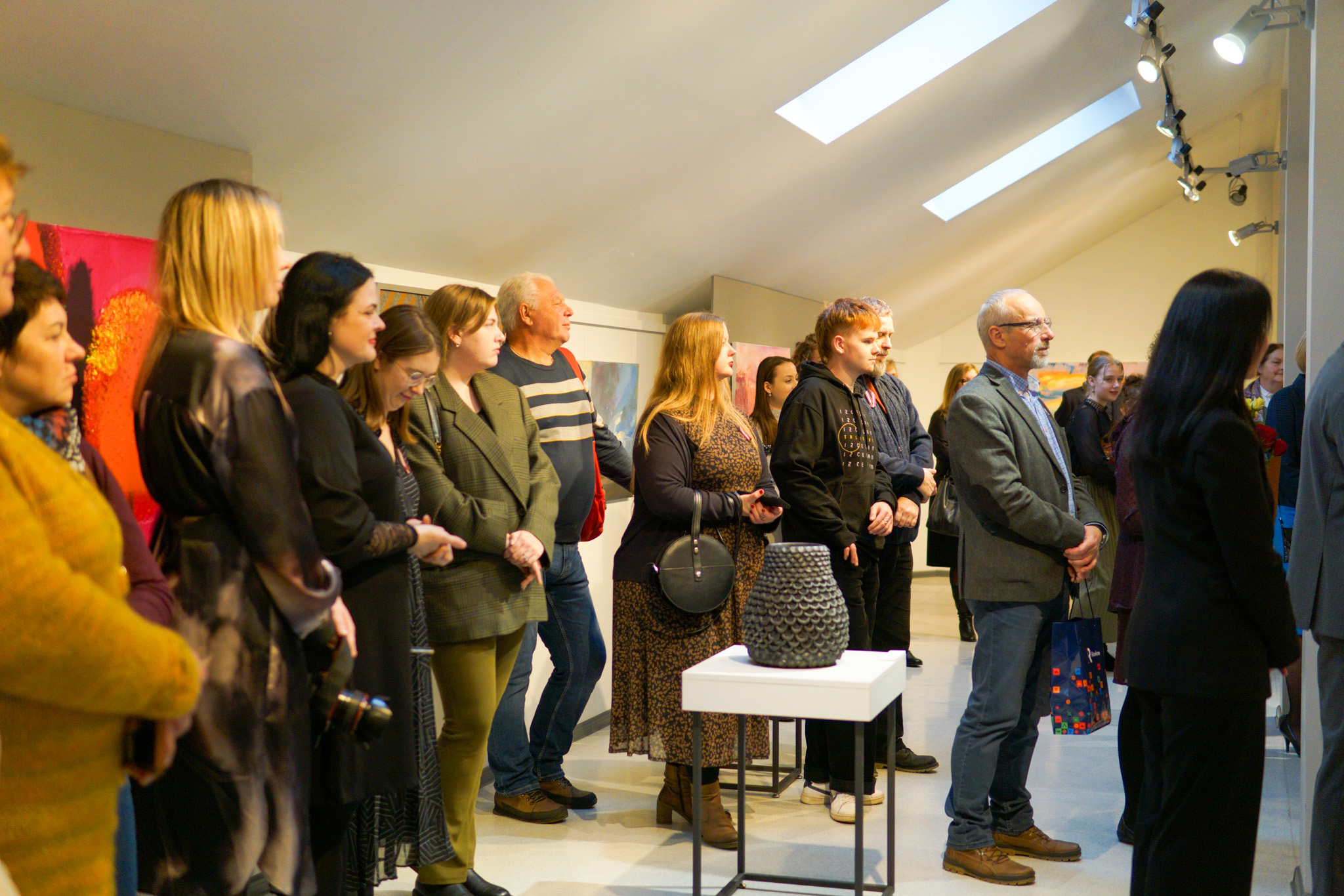Kai izstuodis atkluošonys uzrunā saceja LKM direktore Anastasija Strauta, sevkurs nu muokslinīku dorbu nas leidza ari autora ideju, emocejis i pīredzi, kas ir tuo autora “styga” i veids, kai jis radz pasauli sev apleik.
