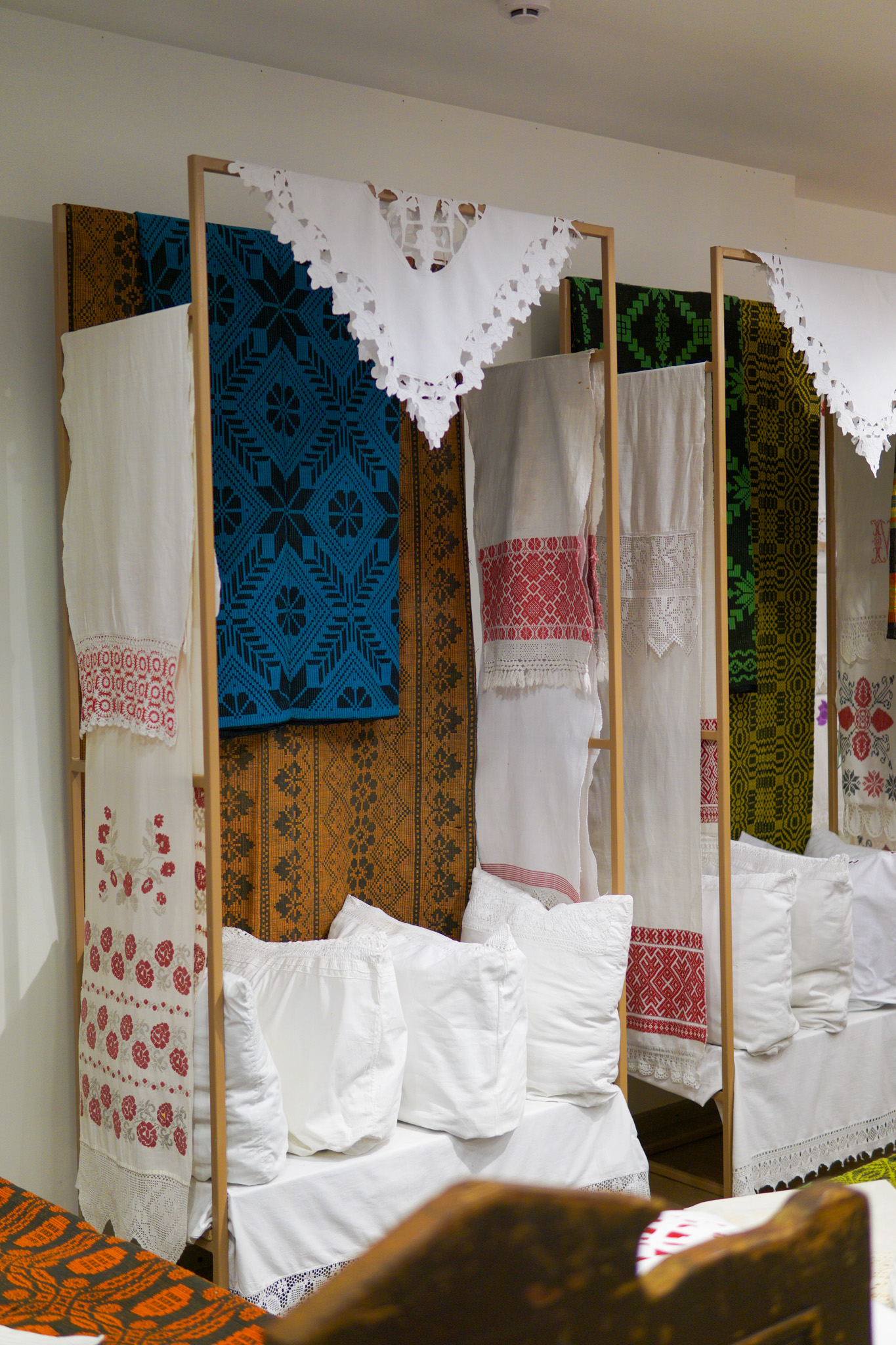 Muzeja kolekcejā asūšī cymdi nav cīši seneji – tūs datej ar 20. godu symta ūtrū pusi. Tys skaidrojams ar tū, ka cymdi tyka nosuoti, na turāti skapī. Tok taipat te radzama cīši lela daudzveideiba – vacuokī cymdi ir iz bolta fona ar kruosainu rokstu, ari nu nakruosuotys dzejis, jaunuokim jau ir tymsuoks fons. Latgolai rakstureigi mīreiguoki, zemis tūni, tok ekspozicejā ir cīši lela kruosaineiba. Skaidrys, ka ari nazkod mārgom gribiejīs paraudzeit koč kū jaunu, nūsavērt, kai dora cytur i raudzeit atdarynuot, na tik pīsaturēt pi vītejūs rūkdorbu tradiceju.