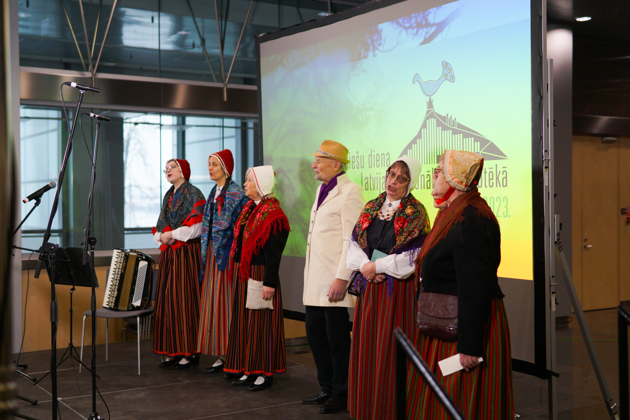 Fotogalerejā: Lībīšu dīna Latvejis Nacionalajā bibliotekā, foto Amanda Anusāne/portals lakuga.lv