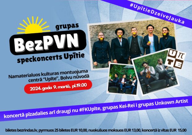 9. martā 19 stuņdēs paradzātajā koncertā Upītē kūpā ar “Bez PVN” pīsadaleis ari #FKUpīte, grupys “Kei-Rei” i “Unknown Artist”. Beletus var nūpierkt beletu tierdznīceibys sistemā bezrindas.lv, cena īprīškpuordūšonā 13,00 eiro, nūtikšonys dīnā – 15,00 eiro.