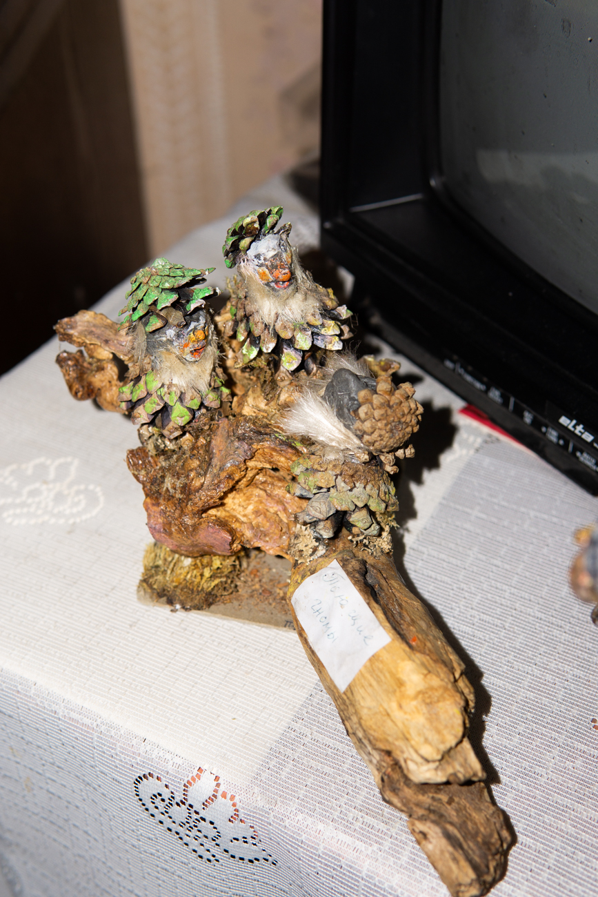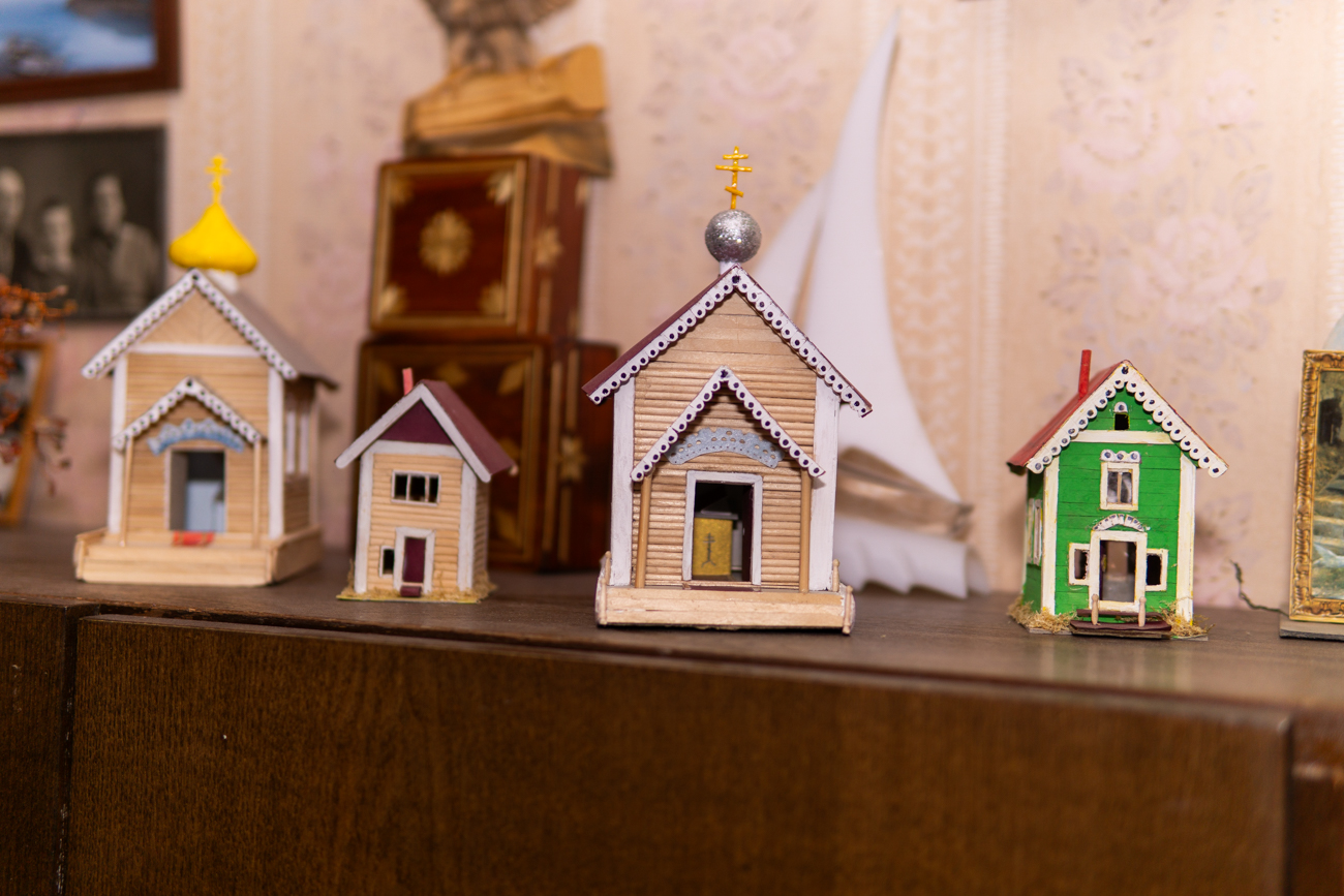 Kompoziceju izstuode bejuse bazneicā, kur Jevgenija tū atstuoja ari kai duovynuojumu. Pošai sātā palykušs divejis cīši interesantys kompozicejis. Taipoš sātys sekceju ari papyldynoj pošys rūkom taiseitys moziņkys bazneicenis i ākys nu smolku kūceņu i cytu mikroizejmaterialu – sārkūceņu, papeira, cysu. Bazneicenis izstruoduotys da pošu seikumu – tom vydā izveiduots oltors ar ikonu, pat pakluojs.