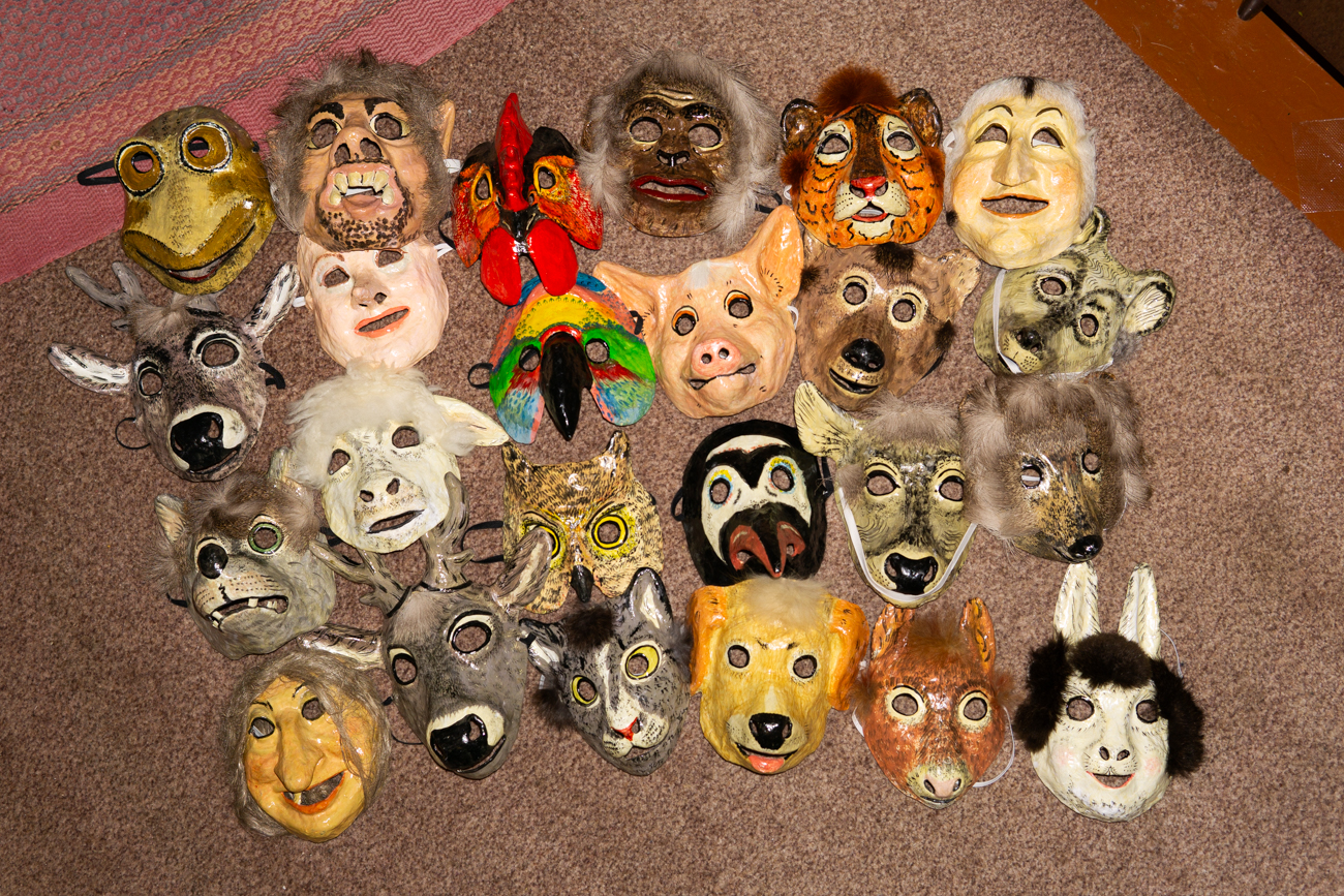 Īdviesmi maskom kuņdze raudzeja atrast vysaiduos karteņuos, kurys īraudzeja apleik – žurnalūs, gazetuos, kalendarūs i vysur kur cytur. Kartenis tyka izgrīztys i rodūšā pīejā puortaiseitys pa sovam, kab nu tūs dabuotu unikalu masku. Puorsvorā masku vydā ir daudzi meža, sadzeivis i eksotiskūs zvāru, taipoš ari senejū puorsoku tālu i ari cylvāku fenomenalys sejis izteiksmis. Lopsa, zyrgs, Baba Jaga, vuška, kačs, peile, mierkačs, papagaiļs.
