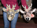 Maskys ir taiseitys autentiskajā, godu symtu senejā papjemaše tehnikā, kur golvonais izejmaterials ir papeirs. Tūlaik, 90. godūs, nabeja taidu leimu, kai ir niu. Jevgenija vysus godus, kod veiduojuse maskys, leimi taisejuse poša – iudinī tyka vuoreiti mylti.
