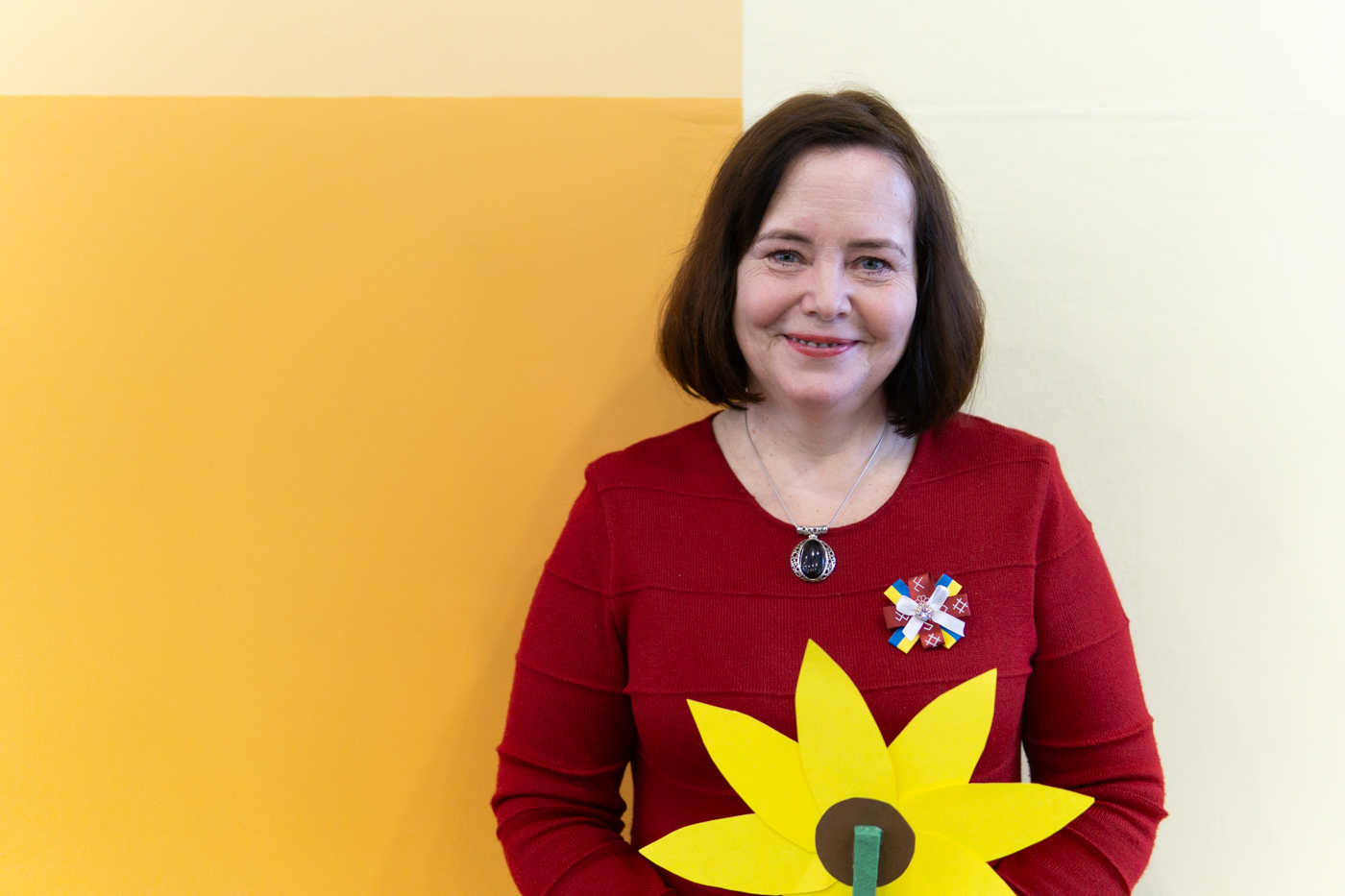 “Pasasokūt Latvejis Universitatis diplomam, kas Ukrainā tyka cīši cīneits i skaitejos kai lela mārūga prestižs, mani pījēme dorbā Lauksaimnīceibys akademejis Filozofejis i viesturis katedrā par laboranti. Es beju struoduojuse ari Reigā par laboranti, protu drukuot iz tuo laika rokstomūs mašynu. Tys beja pyrmais vaicuojums dorbā – drukuot muoki? Muoku! Volūdu zini? Nazynu! Tu esi filologs – tiksi golā! Vysi pasnīdzieji nese sovus ar rūku raksteitūs dorbus – lekceju materialus, disertacejis, tok maņ tū vysu vajadzēja nūdrukuot iz mašynys. Nazynūt volūdu, es izmontuoju sovys filologa zynuošonys – krīvu volūda i ukraiņu volūda ir cīši leidzeigys. Poša sev izveiduoju vuordineicu, saraksteju leidzeigūs vuordus. Tod jau ari kūpā ar bārnim vuicejūs ukraiņu volūdu. Taipoš kai ari niu ukraiņu vacuoki vuicuos kūpā ar sovim bārnim latvīšu volūdu,” stuosta sīvīte.