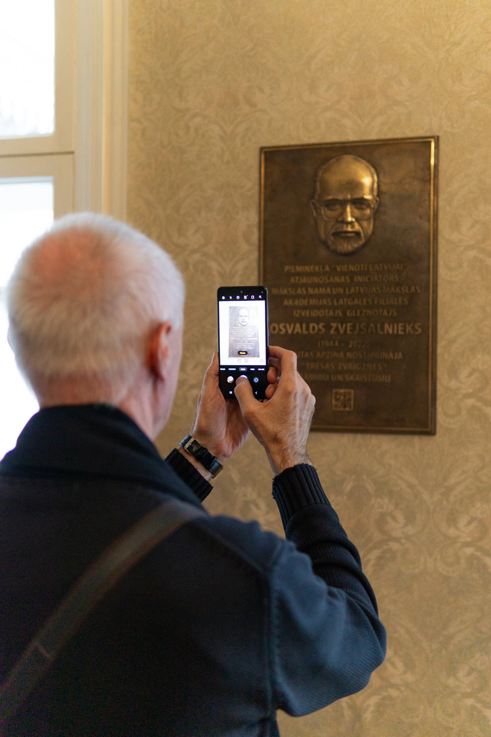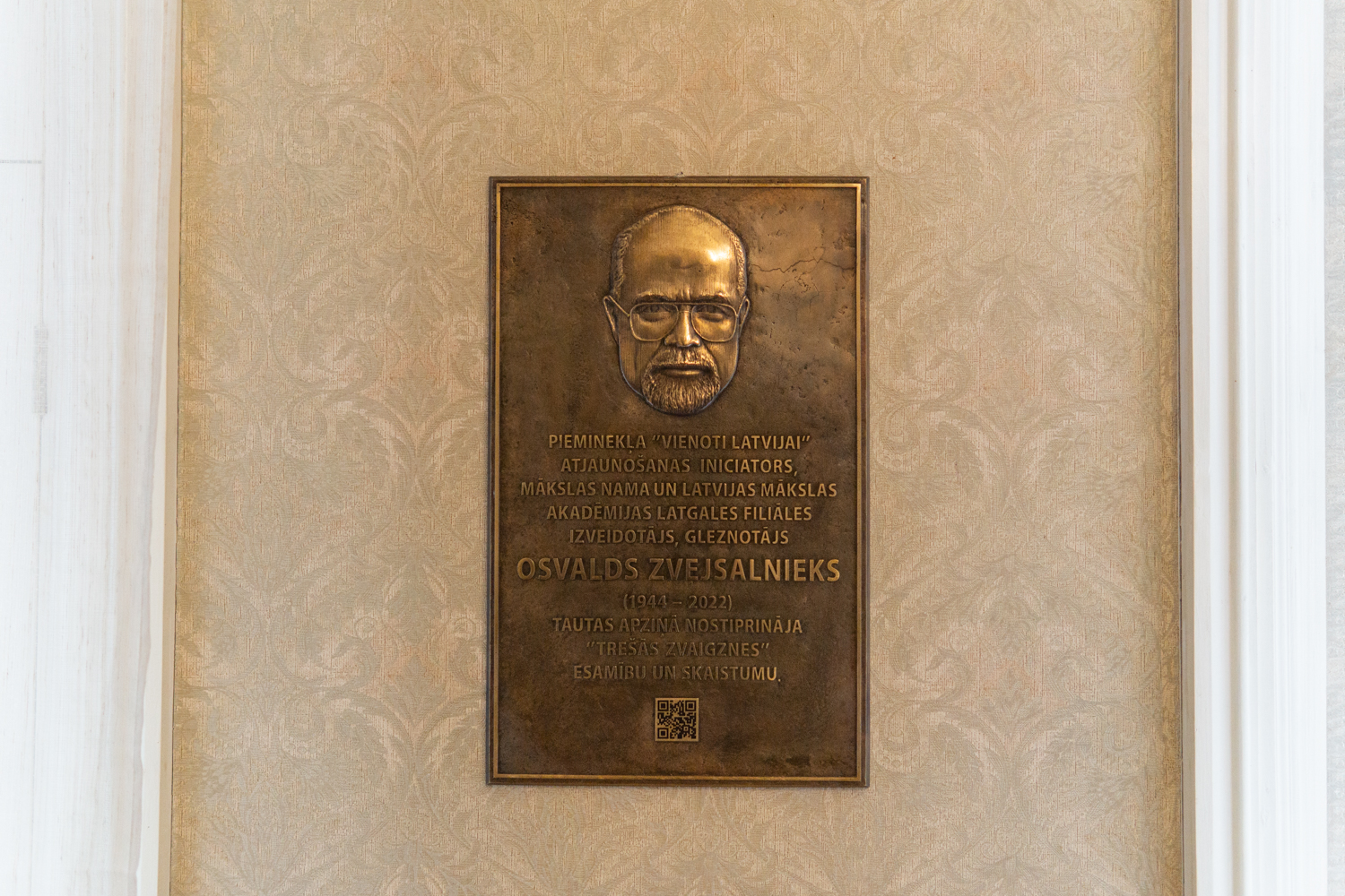 Ar atmiņu stuostim atkluota gleznuotuojam Osvaldam Zvejsalniekam veļteita pīminis zeime