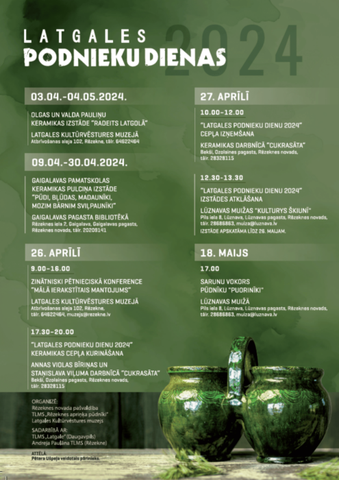 Latgolys pūdnīku dīnu ceplis tiks kūrts Rēzeknis nūvoda Ūzulainis pogosta keramikys darbneicā “Cukrasāta”, tok pūdnīku dīnu golvonuo izstuode prīcynuos acs Rēzeknis nūvoda Lūznovys muižys “Kulturys škiunī”. Taipoš ari piec pūdnīku dīnu Lūznovys muiža 18. majā aicynuos iz sarunu vokoru ar vairuokim pūdnīku “puorinīkim”, kab veiduot atmiņu tyltus par sasatikšonu ar meistarim car ļaužu atmiņu stuostim.