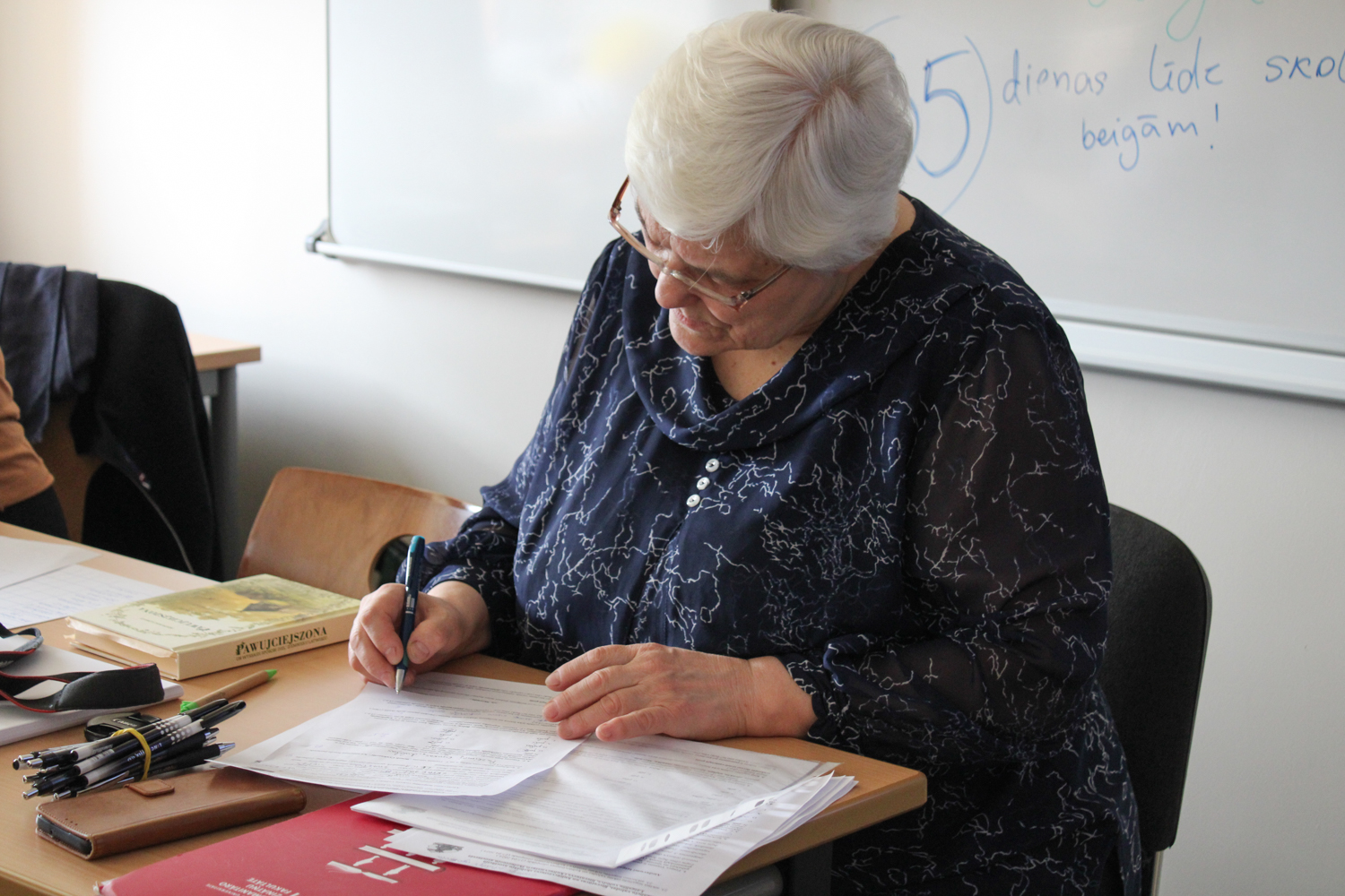 “Šudiņ es skaiteju Ilzys Spergys “Breiveibu” i Aijis Mikelis dzejūli “Reizem mes varim paīt garum”. Gryušuok laikam beja tys, ka kasdīnā es reši izmontoju latgalīšu volūdu. Tekstā beja daži vuordi, kurus es na vysai saprūtu, tūs īsavuiceit beja dīzgon gryuši. Latgalīšu volūda maņ ir kai svešvolūda. Maņ ruodīs, ka latgalīšu volūda ir tei, kuru mums vajadzātu kūpt i zynuot, vuiceitīs, jo tei ir daļa nu myusu dzeivis, viesturis, kulturys,” stuosta Alesja.