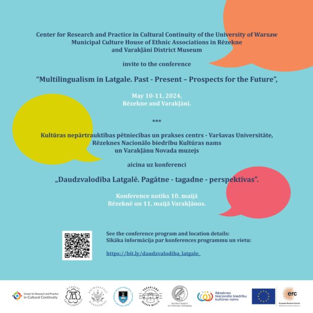 Konferenci “Daudzvalodība Latgalē. Pagātne – tagadne – perspektīvas” reikoj Varšavys Universitatis Kulturys napuorsatraukšonys pietnīceibys i praksis centrs, Rēzeknis Nacionalūs bīdreibu Kulturys noms, kai ari Varakļuonu nūvoda muzejs. Konference ir daļa nu storptautyska projekta, kura mierkis ar vysaidom metodem ir vuokt datus, analizēt, pieteit i radeit leluoku izpratni par tū, kai rūnās i teik uzturāta vītejuo daudzvolūdeiba, deļkuo tei izabeidz i kai tei var otkon rastīs nu jauna. Projekta komanda pietej vītys ar lelu volūdu koncentraceju vairuokuos pasauļa vītuos: Vyds i Austrumeiropā tuos ir Latgola Latvejā, Kašubeja i Belsko-Bjala Pūlejā, kai ari atseviški regioni Meksikā, Dīnavydafrikā i Vanuatu.