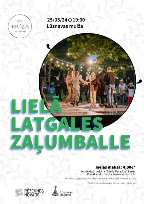 Tai kai poša asu izauguse piļsātā, zaļumbals maņ vys tik vaira voi mozuok saīt taida kai eksotika, deļtuo vēļ vaira pīdzeivuošonys vārta! Sastdiņ, 25. majā, vīnu taidu zaļumbalu varēs baudeit Rēzeknis nūvoda Lūznovys muižā, kur Lelajā Latgolys zaļumbalā padoncuot zam zvaigžņuotu dabasu, ļusteigu muzykanti spālātuos muzykys ritmā varēs pi vīnys nu skaistuokūs Latgolys kulturviesturis pērļu. Kur vēļ skaistuoku i romantiskuoku vosorys suokšonūs!