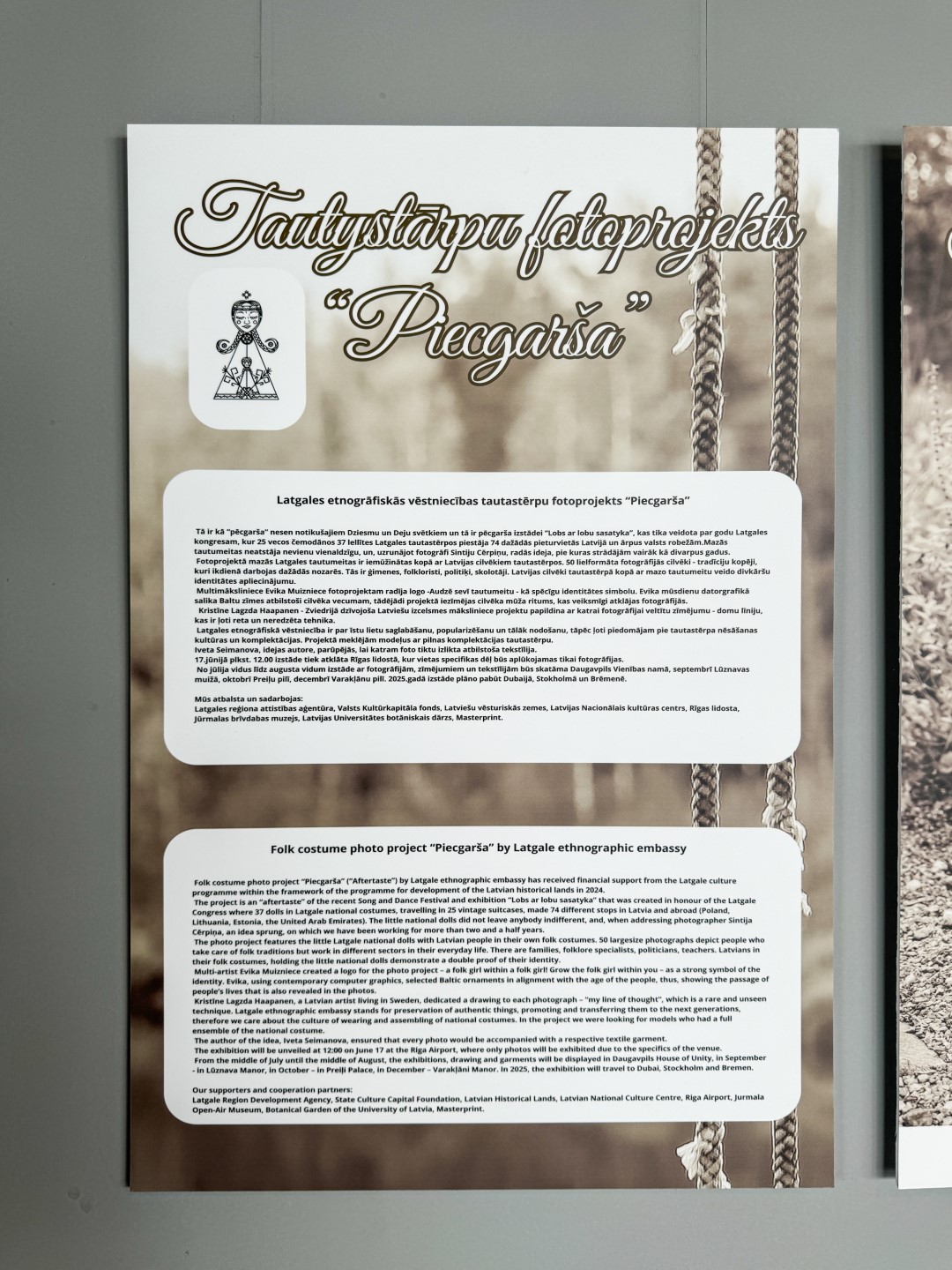 “Piecgaršys” fotografeju autore ir Sintija Cērpiņa – fotografe nu Cāsu. “Koč i poša naasu nu Latgolys, saīt, ka Latgolu izzynoju caur mozajom Annužom i jūs vysaidajim Latgolys tautystārpim. Taipat juosoka Ivetai, pasasokūt kurai, asu vaira gastejuse Latgolā. Kūpā projektam “Piecgarša” īmyužynuojom 150 leluoki i mozuoki ļauds, niu lidūstā var apsavērt 44 biļdis, kam vītys vaira nasaguoja, bet kūpā projektā izstuodei ir paradzātys ap 70 biļžu, tok gribīs jau da tuo 100 tikt! Gribīs, lai biļdēs pasaruoda korekta tautystārpa nosuošonys kultura, deļtuo šaļtim saīt, ka ir cīši lela atlase, kam iz fotosesejis reizi na vyss bejs tik precizi, nav tik pylna komplektaceja, kai byutu gribiejīs,” stuosta Sintija Cērpiņa. Daļa nu izstuodē apsaveramūs biļžu kruosainā versejā tykušys ari Latgolys etnografiskuos viestnīceibys izdūtajā kalendarā 2024. godam. “Kalendarā ir kruosainuos biļdis, bet taišni itaids vacynuotais, retro biļžu styls, kaids ir izstuodē, ir muns rūkroksts jau septeņus godus. Koč i daža biļde topuse tik pyrma nedelis, bet itai jei izaver, ka byutu taiseita cīši, cīši seņ, aptyvai pyrma 120 godu,” soka Sintija. Vaicojūt, kas plānuots iz prīšku, Sintija īsasauc, ka plānu vēļ cīši daudzi. “Tai kai cytugod byus Dzīšmu svākti, plānojam vaira īmyužynuot bārnus. Fotografa dorbs tautystārpu īmyužynuošonā nasabeigs. Koč Iveta ir cīši pīsardzeiga ar plānu atkluošonu, skaidrys ir tys, ka gribīs vys tik īt ari iz gruomotu. Pošai projekts paleidzējs vaira izzynuot par tautystārpim, niu jau divejus godus ceņteigi vuicūs, eju iz kursim i plāns tikt pošai pi sova tautystārpa,” tuoļuokuos idejis atkluoj Sintija.