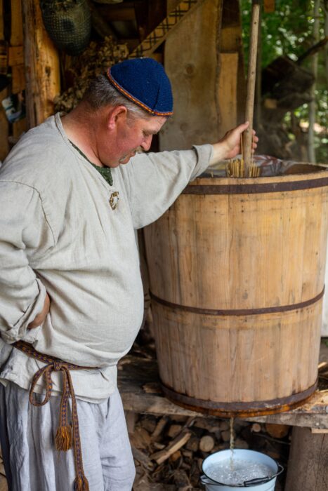Nuokušajā sūlī teik sagataveiti vysi ols vuoreišonai vajadzeigī trauki, spani i tūveri ols tacynuošonai i dzesiešonai. Vīns nu svareiguokūs nūsacejumu ols taiseišonā ir trauku i procesa teireiba. Kūka trauki teik izšmucynuoti ar vardušu iudini, vydā līkūt, pīmāram, bārza veikšu voi zoru. Piec tuo zlauktā teik īlykts filtracejis režgis, garkulu rudzi, papyldu cysys. Cyti meistari dalīk ari paeglis zorus i filtracejai, i aromatam navajadzeigūs baktereju samazynuošonai. Teik sagataveits eipašs mīts, ap kū apsīn i atlūka garkulu cysys, kam tuos ir nūzeimeigs elements mysys filtracejis procesā.