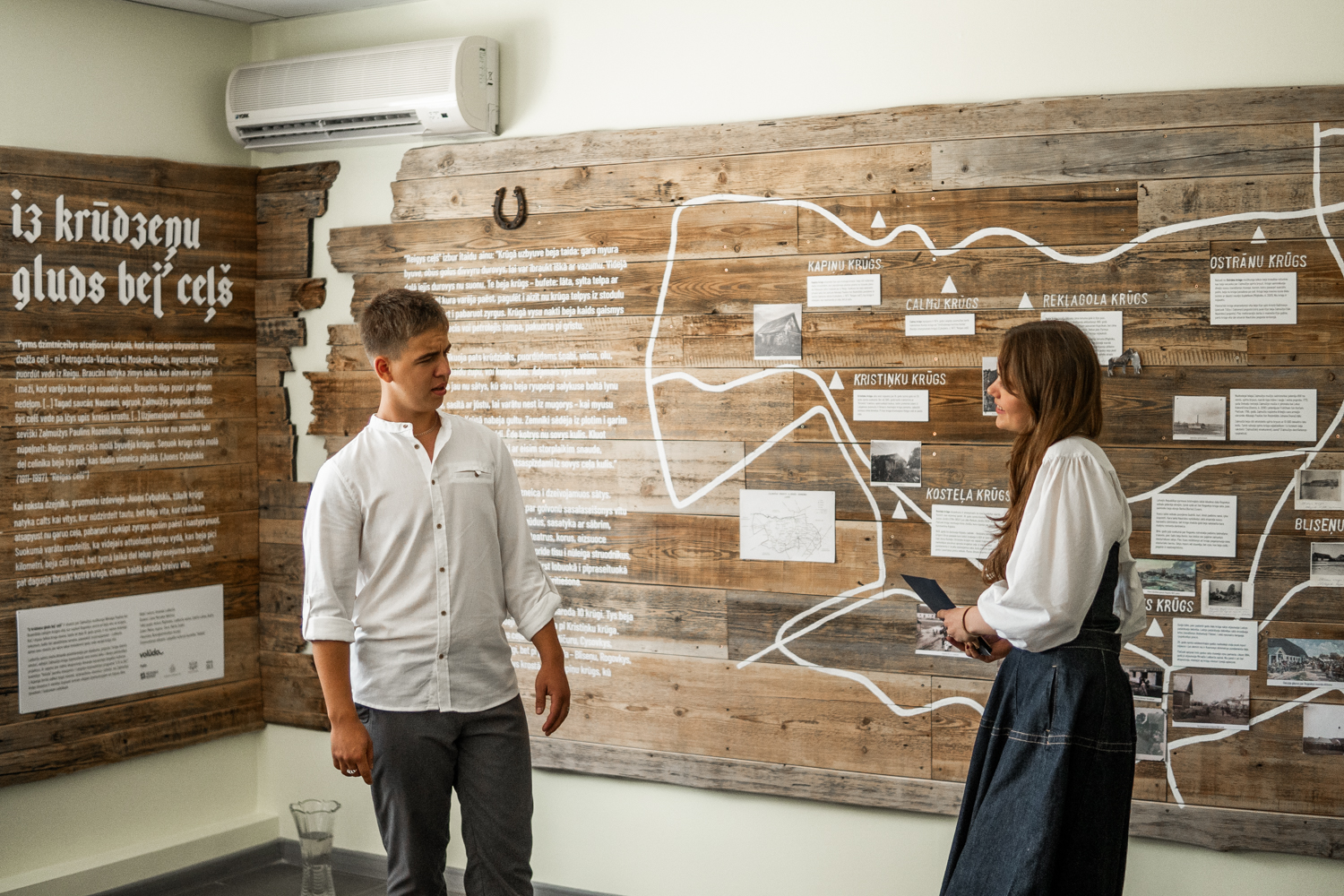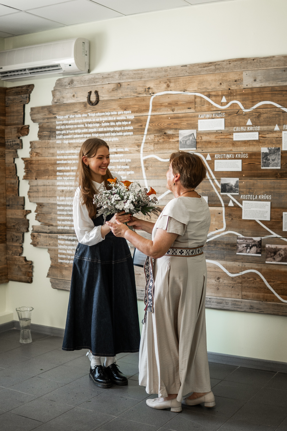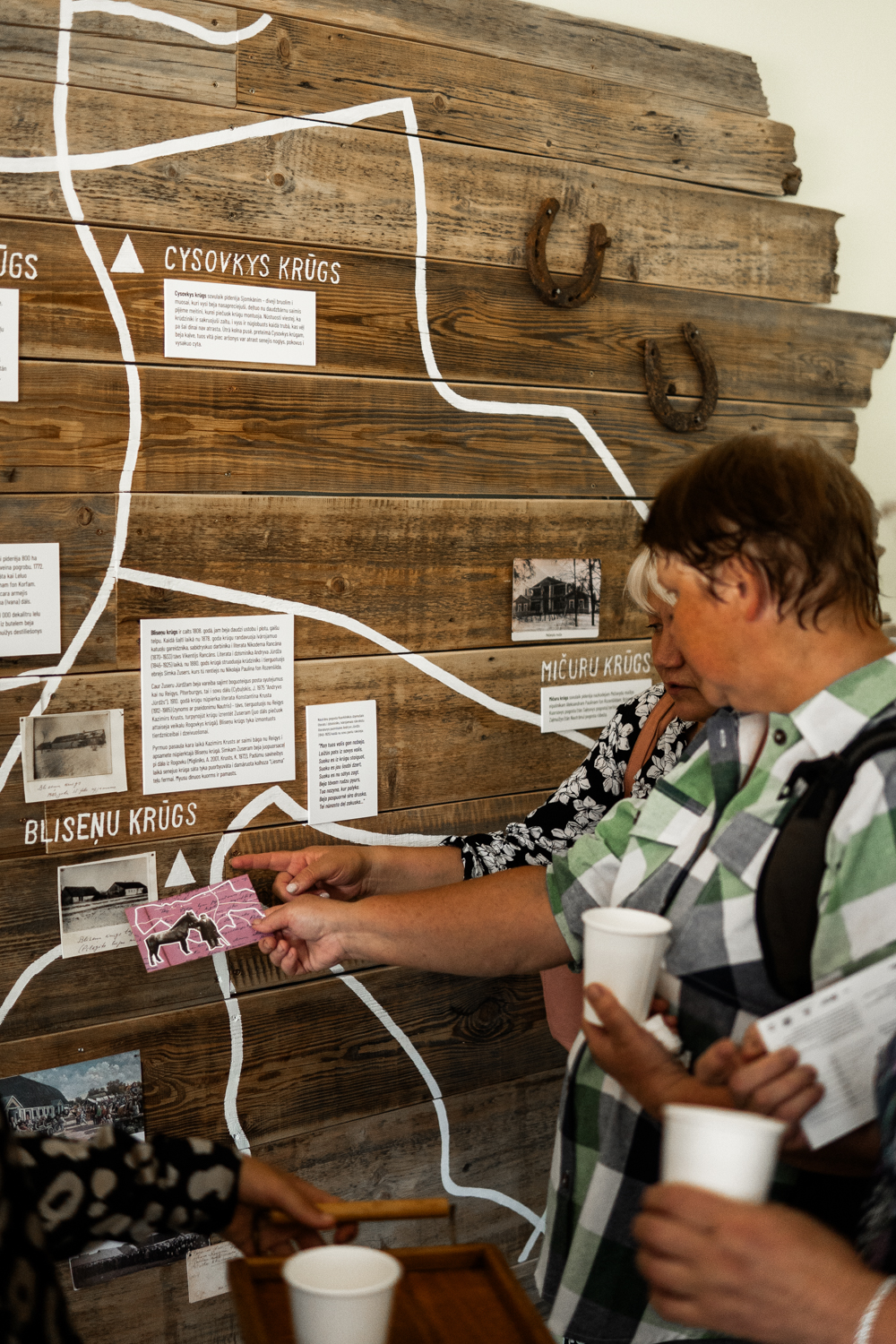 Pasuokuma laikā Amanda Ludbuorža pasasaceja ari vairuokim vītejim cylvākim, kas bejuši kai lels atbolsts informacejis īvuokšonā i apkūpuošonā. Vīna nu tūs ir Andra Zubko-Melne, kas deve savu artavu ekspozicejis izveidē, pasadolūt interesantūs stuostūs par krūgu viesturi, godskaitlim i cytu informaceju.