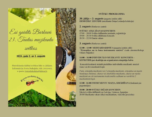 Individualī tautys muzykanti i muzykantu grupys 23. tautys muzykantu svātkim Borkovā vēļ var dasasaceit leidz 14. juļam, aizpyldūt dasacejumu ITE.
