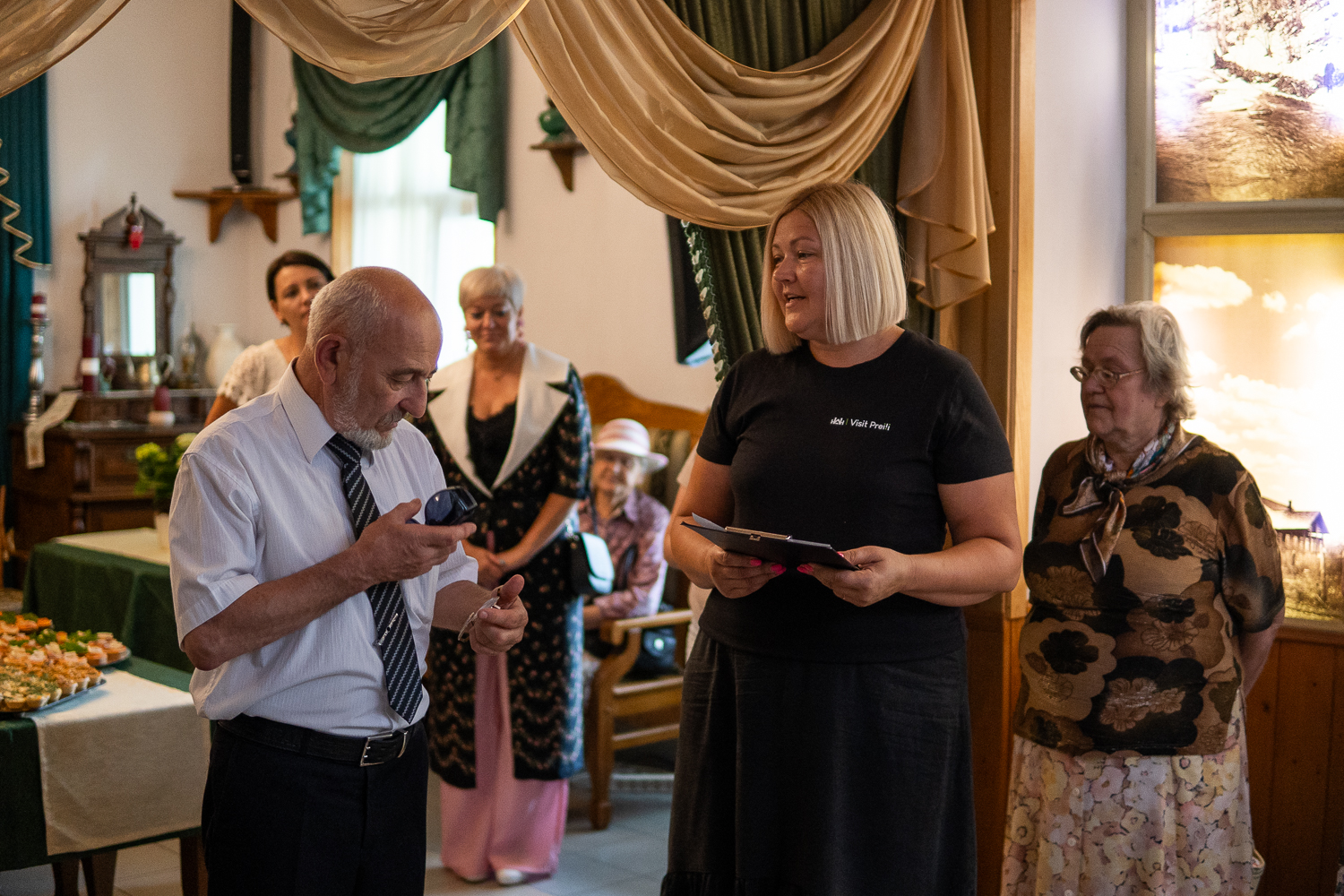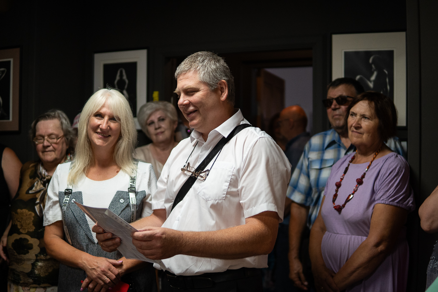 Sovā uzrunā Preiļu nūvoda Turysma atteisteibys i informacejis centra vadeituoja Zane Pranevska pastreipuoja, ka fotografs Juoņs Gleizds par sovom prasmem i dorbim sajiems aptyvai 600 gūdolgu i 170 medaļu vysūs pasauļa kontinentūs. Jei ari pasasaceja fotomuokslinīkam Igoram Pličam, kurs daudzu godu garumā ir vuocs i saglobuojs Juoņa Gleizda pīminis lītys i dorbus. Ustobu tuos atkluošonā svieteja Preiļu Romys katuoļu draudzis prīsters Juoņs Stepiņš.
