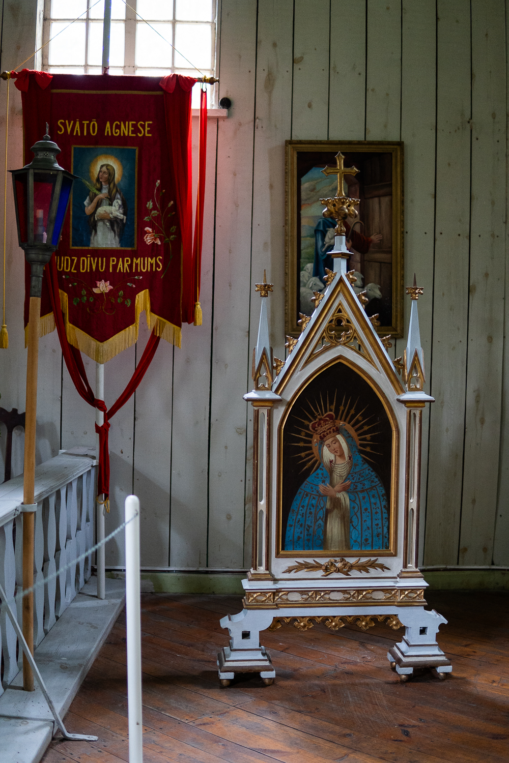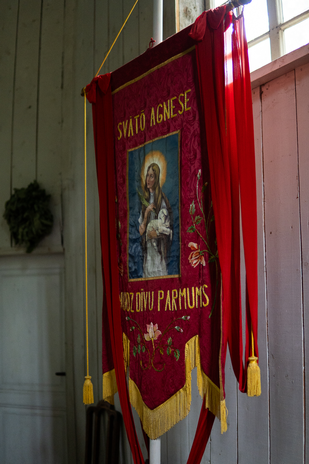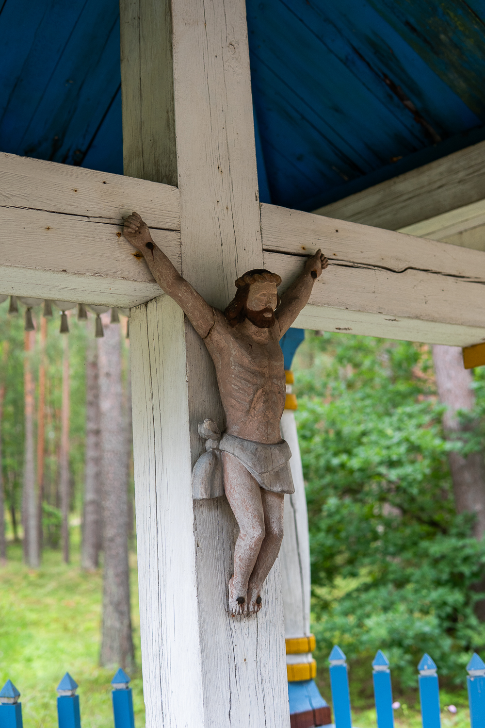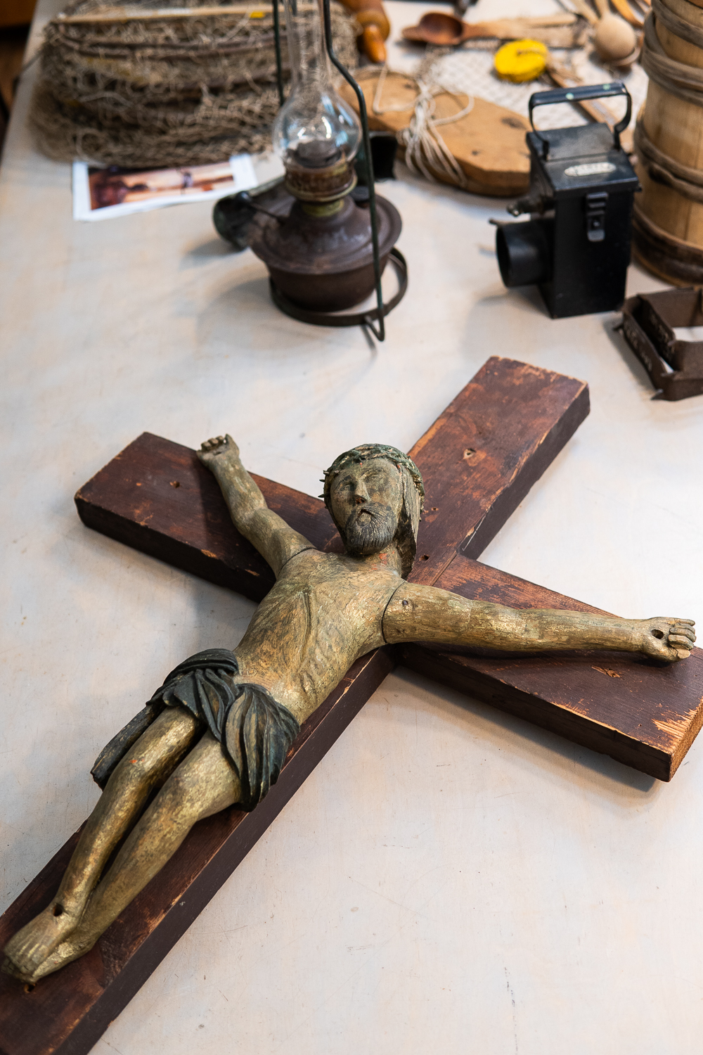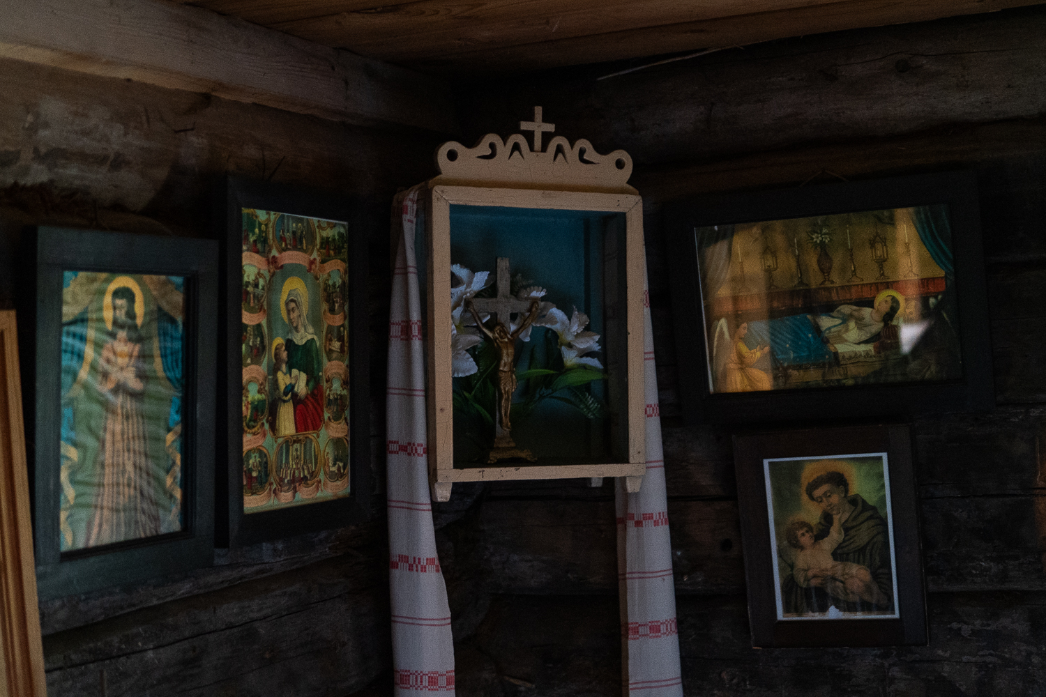 Muzeja ekspozicejā atsarūn diveji krysts – vīns zam jumteņa, ūtram izcalta pat nalela sāta, kas atguodynoj mozu bazneiceņu. Kotru godu teik raudzeits organizēt ari maja dzīduojumus. Mārtiņš Kuplais atguodoj, ka jī ekspedicejuos jau 70. godūs nalegali tūs īrakstejuši, kam tūreiz nikas taids nav ļauts. Taipat fiksāti ari krucifiksi.