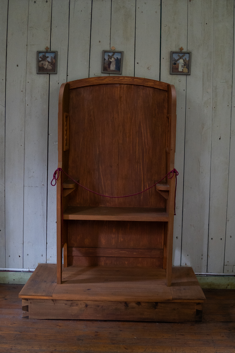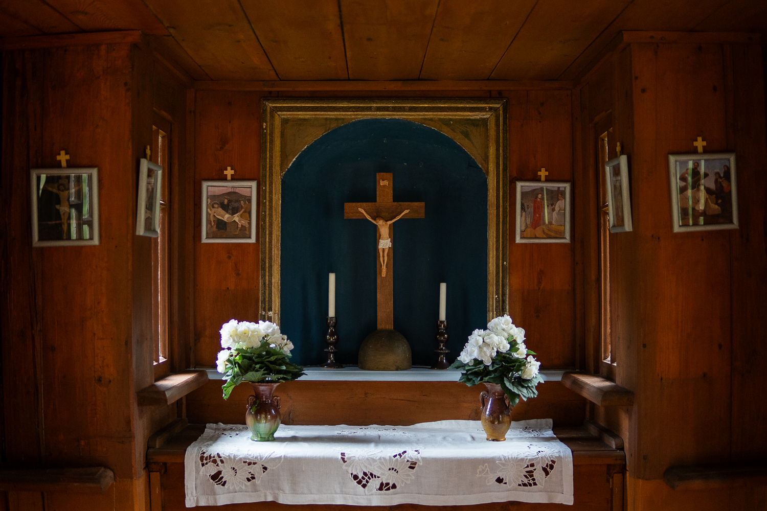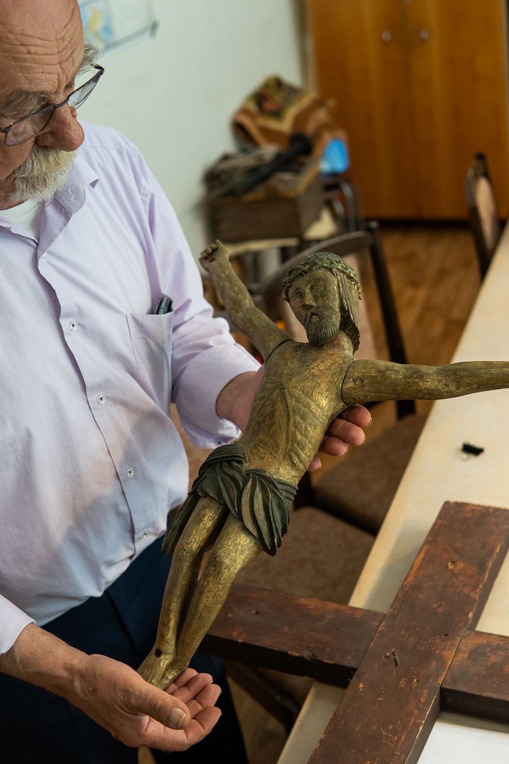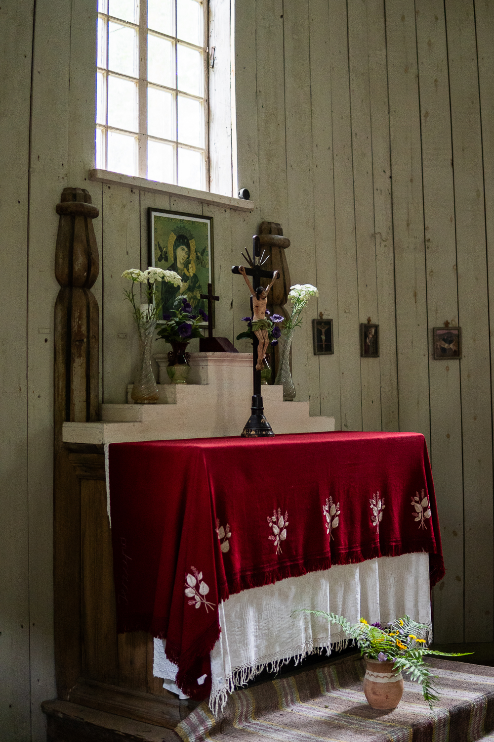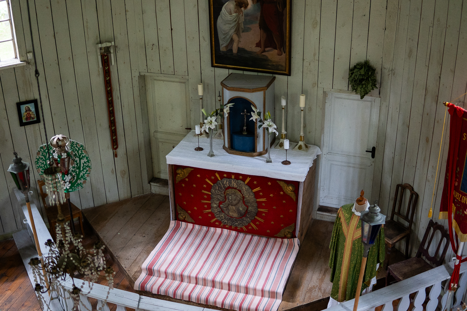 Muzeja ekspozicejā atsarūn diveji krysts – vīns zam jumteņa, ūtram izcalta pat nalela sāta, kas atguodynoj mozu bazneiceņu. Kotru godu teik raudzeits organizēt ari maja dzīduojumus. Mārtiņš Kuplais atguodoj, ka jī ekspedicejuos jau 70. godūs nalegali tūs īrakstejuši, kam tūreiz nikas taids nav ļauts. Taipat fiksāti ari krucifiksi.