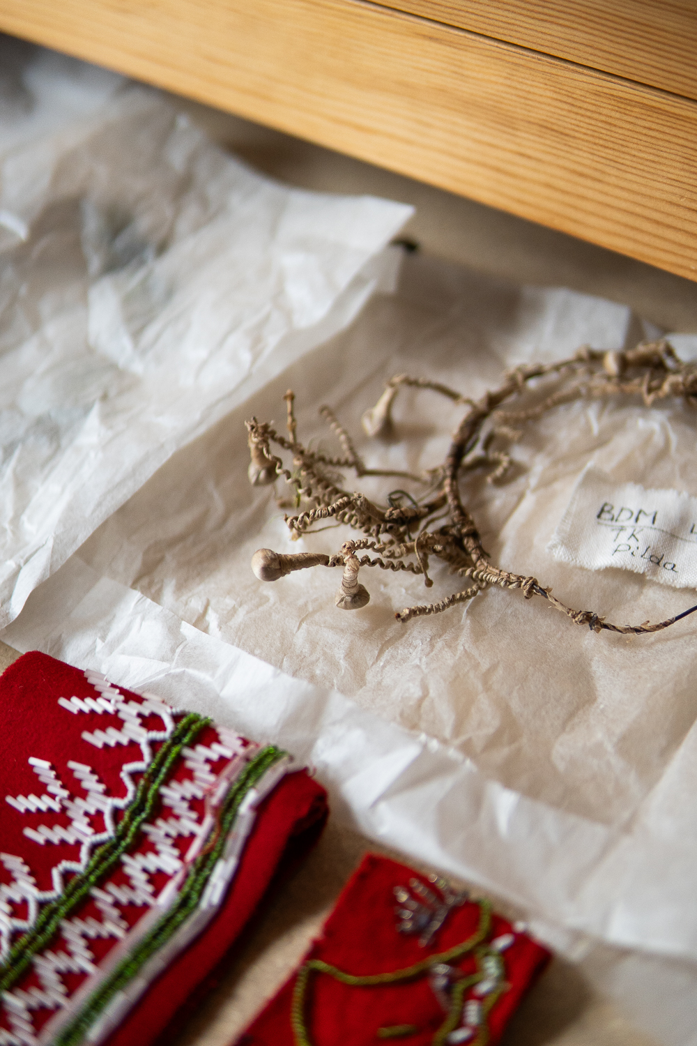 Galerejā Latvejis Etnografiskuo breivdobys muzeja Latgolys ekspoziceja i kruojuma duorgumi. Foto: Amanda Anusāne/portals lakuga.lv