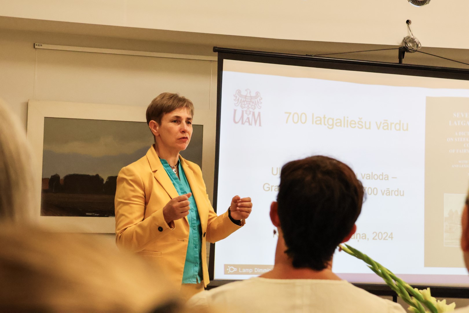 Jaunuos vuordineicys “Seven hundred Latgalian words. A dictionary based on Stefania Ulanowska’s collection of fairytales from 1895. With morphological and lexicological analyses” (“700 latgalīšu vuordu vuordineica, kas taiseita iz Stefanejis Uļanovskys puorsoku (1895) pamata, ar morfologiskim i leksikografiskim komentarim”) prezentaceju vadeja literaturzynuotneica Ilga Šuplinska, bet sveicīņa vuordus Nikolei veļteja Viļānu Nūvoda pietnīceibys muzeja vadeituoja Margarita Skangale i Stefanejis Uļanovskys dorbu pietneica, Rēzeknis Tehnologeju akademejis studeju prorektore Angelika Juško-Štekele. Taipat ar muzyku saguojušūs prīcynuoja Viļānu kulturys noma kapela “Bumburneicys”, kuru repertuarā ari ir S. Uļanovskys savuoktuos dzīsmis.