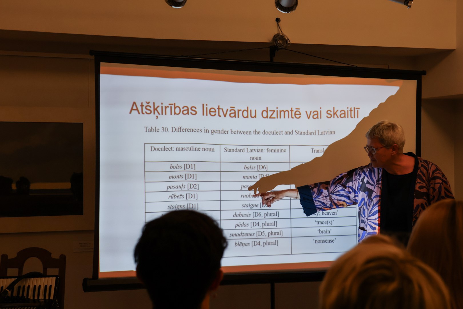 Prezentacejā profesore Nikole Naua īpazeistynuoja ar jaunuos vuordineicys saturu, sastateišonys principim, kai ari pīduovuoja nalelu īsavieršonu vuordu izalaseišonys metodikā. Kai nūruodeja N. Naua, ideja par vuordineicys vajadzeibu sovulaik bejuse jau pošai etnografei S. Uļanovskai – juos raksteitajuos viestulēs, syutūt Viļānu apleicīnē savuoktūs materialus publiciešonai, beja pīzeime, ka vajadzeibys gadīnī varūt sastateit ari vuordineicu, bet varbyut i taidys navajadziešūt, kam vysi materiali ir burtiski tulkuoti pūļu volūdā. “Kod Uļanovska brauce iz Viļānim, jai beja taisni taids pats vacums kai niu maņ,” smaidūt soka Nikole i latgalīšu kulturys ziņu portalam lakuga.lv stuosta, ka pyrmū reizi ar Stefanejis Uļanovskys dorbu jū īpazeistynuoja kolege Pūlejā. “Es jai nazkod saceju, ka mani interesej latgalīšu volūda i jei kai literaturzynuotneica i folkloriste maņ atsyuteja vīnu failu. Skaiteju i mani cīši īinteresēja tei volūda. Suoču ar puorsokom, kam tys beja saisteitais teksts, ari piec satura cīši interesantys,” stuosta Nikole. Ideja par taišni itaidu vuordineicu rodusēs sovulaik Viļānūs reikuotajā Stefanejai Uļanovskai veļteitajā ekspedicejā 2017. godā. Nikole soka, ka niu byut Viļānūs ar gotovu gruomotu asūt breineigi. “Pyrma septeņu godu viļānīšim es apsūleju, ka koč kas byus. Beja sovs laiceņš juopagaida, bet niu eistyn ir. Saprūtu, ka vysim itaids izdavums naderēs, kam pyrmuo daļa ir taida vaira zynuotnyska i angliski, tei vaira volūdnīkim, bet vuordineicys daļa varātu byut interesanta vaira i cytim,” soka vuordineicys autore.