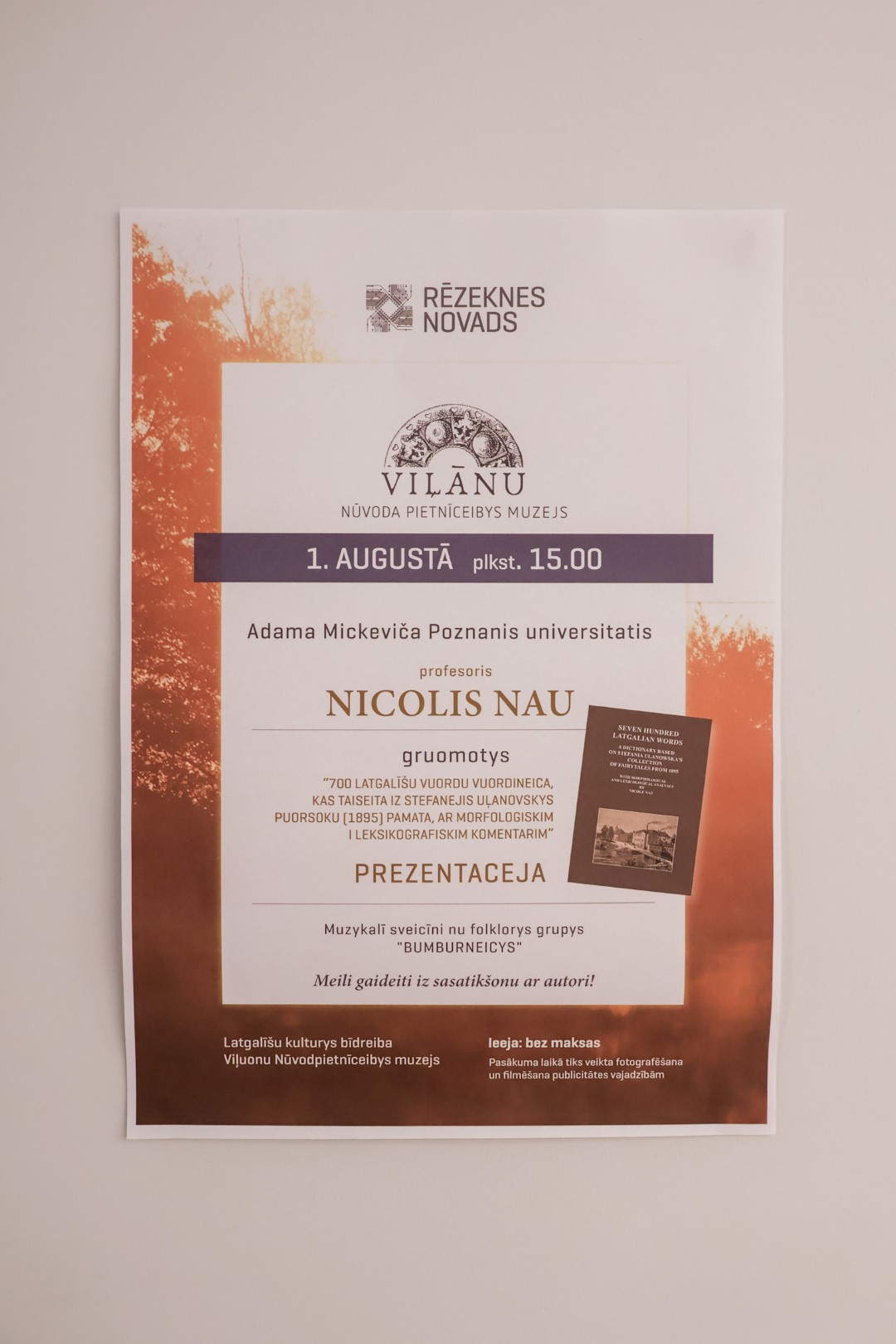 1. augustā Viļānūs, Viļānu Nūvoda pietnīceibys muzejā nūtyka Oduma Mickeviča Poznanis Universitatis profesoris Nikolis Nauys (Nicole Nau) sastateituos vuordineicys, kurys pamatā ir pūļu etnografis Stefanejis Uļanovskys Viļānu apleicīnē pīraksteituos puorsokys, prezentaceja. Jamā kluotyn beja kai vītejī ļauds, tai latgalīšu volūdys i Uļanovskys dorbu pietnīki.