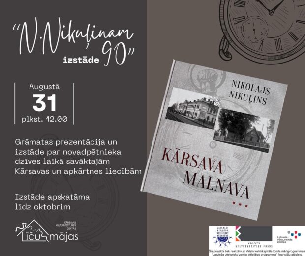 Viesturis gruomotys i viesturyskys izstuodis par Latgolys viesturi nimoz napasaruoda tik bīži. Eipaši taidys, kurys veļteitys kaidam aktivam sovys dzymtuos pusis patriotam i viesturis entuziastam. Itūreiz taids pasuokums 31. augustā nūtiks Kuorsovys kulturviesturis centrā “Līču mājas”. Pasuokuma apmaklātuojim tiks prezentāta labi zynomuo nūvodpietnīka i publicista Nikolaja Nikulina (1934–2022) gruomota “Kārsava. Malnava…”, kluotyn vēļ reizē byus ari juo 90 godu jubilejai veļteituos izstuodis atkluošona. Tamā byus apsaveramys gruomotys, autora dzeivis laikā dabuotuos viesturyskuos līceibys. Sprīžūt piec N. Nikulina bibliografejis, tys varātu byut saistūši na tik vītejim viesturs entuziastim, tok sevkuram, kuram interesej Latgolys viesture.