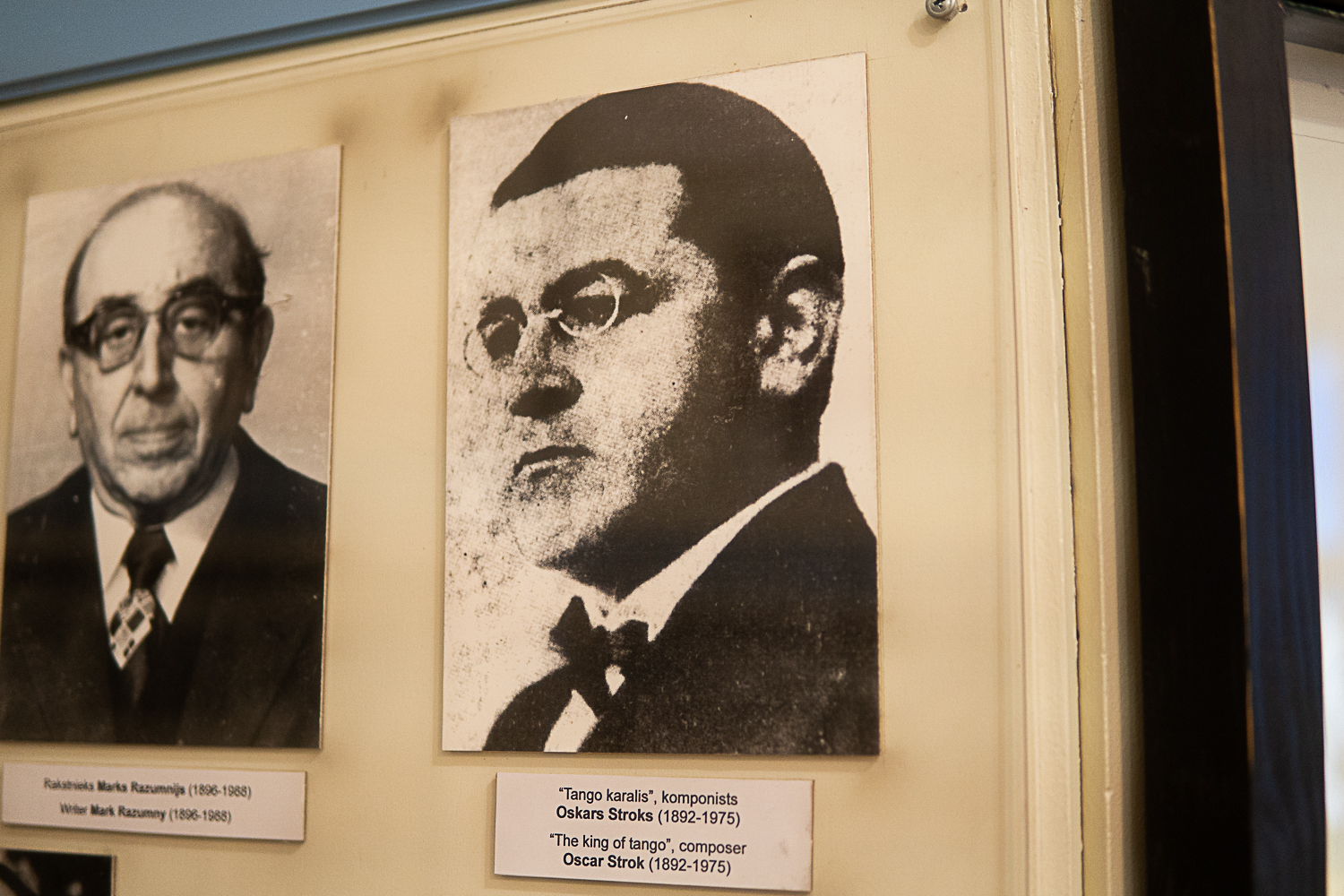 Īspiejams, vīns nu myusu dīnuos vysvaira dzierdātūs Daugovpiļs ebreju ir komponists i pianists, par tango karali sauktais Oskars Stroks (1893-1975). Muzeja ekspozicejā ir ari vareiba pasaklauseit juo sacarātū tango.