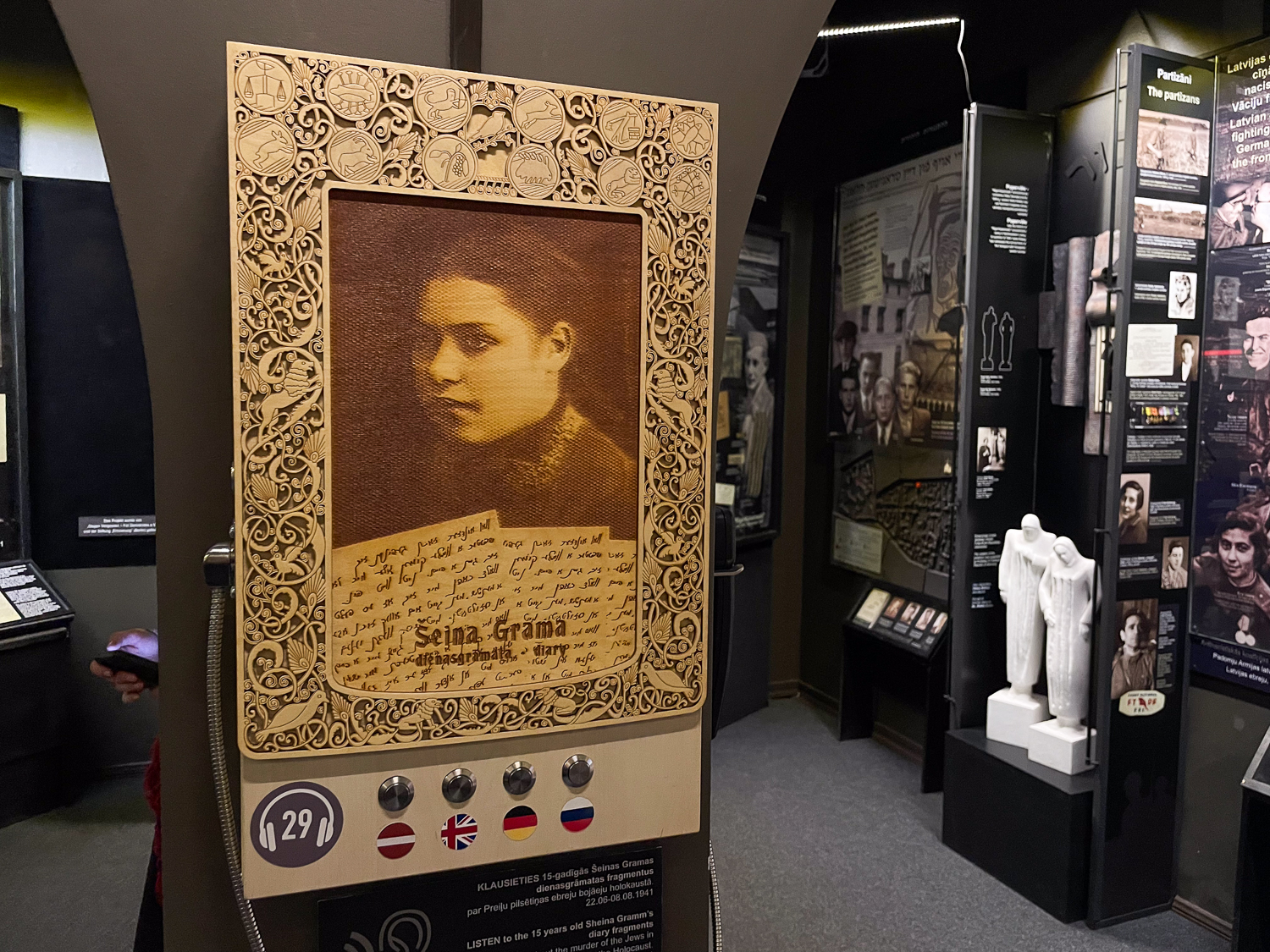 Muzeja ekspozicejis daļā, kas viestej par holokaustu, apmaklātuoji var īsaklauseit ari Šeinys Gramys (1926-1941) dīnysgruomotys fragmentūs, kas ir cīši spylgta i skorba līceiba par tuo laika nūtikšonom. Četrpadsmit godu vacuo meitine dīnysgruomotu sovā dzymtajā jidiša volūdā raksteja tik pusūtru mienesi – nu 1941. gods 22. juņa, kod suocēs PSRS i Vuocejis kars, da 8. augusta, kam dīnu piečuok jei tyka nūgalynuota. Šeina Grama pīdzyma i dzeivuoja Preiļūs – piļsātā, kurā pyrma Ūtruo pasauļa kara 51 % dzeivuotuoju beja ebreji. Holokausta laikā gondreiž jī vysi tyka nūgalynuoti, pasaglobuot saguoja tik tim, kas paspēja evakuētīs iz Krīveju, ari Šeinys bruoļam Gutmanam. Jis karuoja Sorkonajā armejā i kūpā ar karaspāku īguoja Preiļūs 1944. godā, kod ari izzynuoja par sovys saimis liktini i dabuoja sābru globuotū Šeinys dīnysgruomotu. Jau dreiži jis karā kryta, tok dīnysgruomotys kopeja pi Gramu radinīku beja sasaglobuojuse i piec Latvejis naatkareibys atjaunuošonys tyka nūdūta muzejam “Ebreji Latvejā”. Tei ir puortulkuota ari latvyski i 2021. godā izdūta gruomotā “Es gribētu par kaut ko kļūt…” kūpā ar diveju cytu Latvejis ebreju meitiņu dīnysgruomotom.