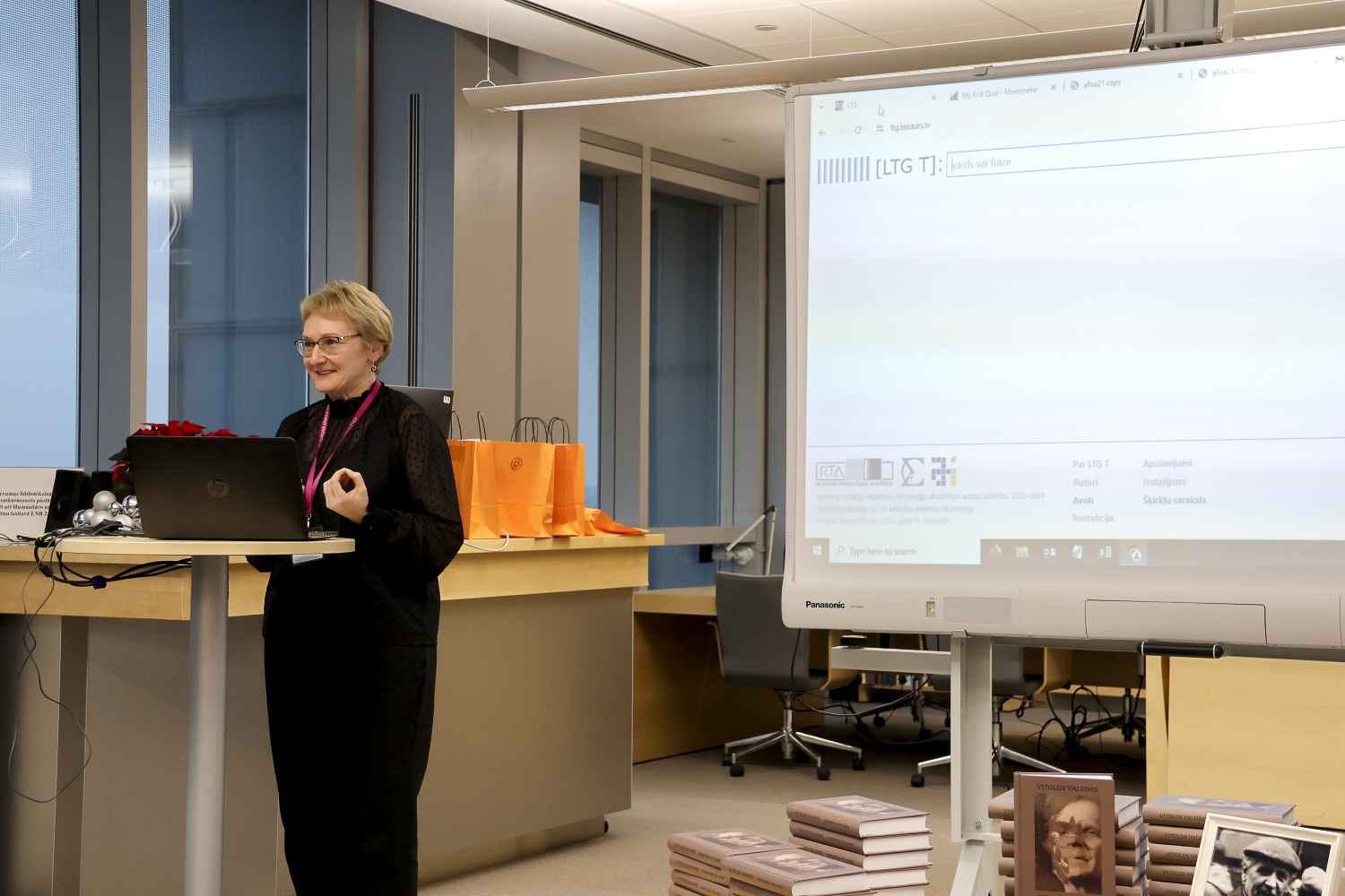 14. decembrī Latvejis Nacionalajā bibliotekā tyka prezentāta pilotverseja latgalīšu volūdys tezauram aba digitalajai vuordineicai. Kai stuosta projekta izstruoduotuoji, pilotverseja ir daīmama sevkuram lītuotuojam, tok niu ir svareigi saprast, cik lels ir pīprasejums i kai iz prīšku apkūpuot informaceju lītuotuojam piec īspiejis draudzeigā veidā, tok reizē napagaisynuot zynuotnyskumu. Prezentacejis pasuokumā varēja izzynuot vaira ari par projekta aizsuokumim, niulejū stadeju i planim iz prīšku.