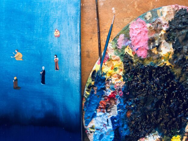 Dzintru vysvaira gleznīceibā īdvasmoj bazneica i religeja, kam poša ir ticeigs cylvāks i tei ir svareiga tema juos dzeivē. “Tei ir tema, kurū var bezgaleigi turpynuot, naizsmeļama i dziļa, kura uzrunoj i cytus cylvākus, i mani,” soka Dzintra. “Tai kai asu muokslys viesturneica, cīši mīļoju i aizaraunu ar vydslaiku muokslu, partū ari ceņšūs daudz skateit itū muokslu caur gruomotom, izstuodem.”