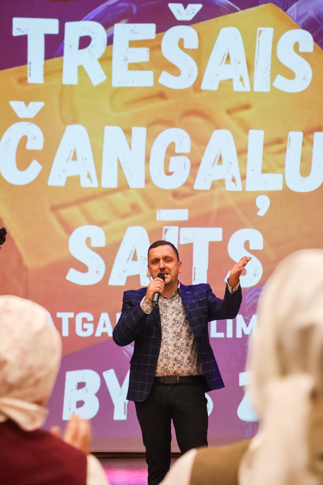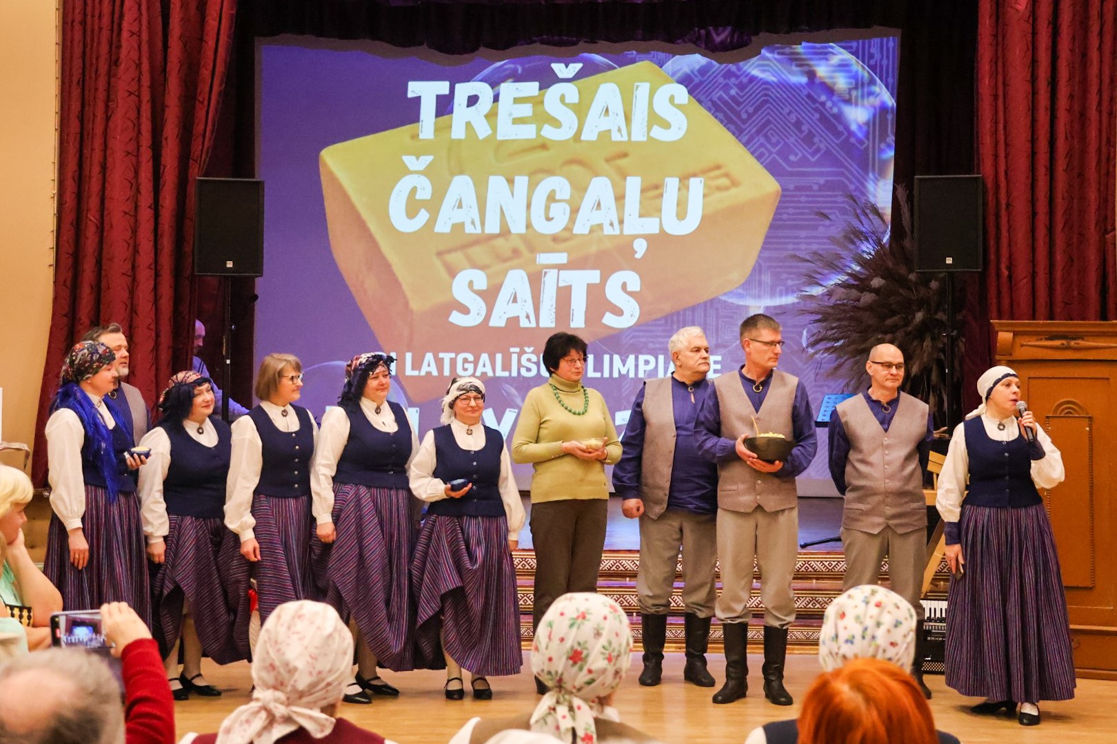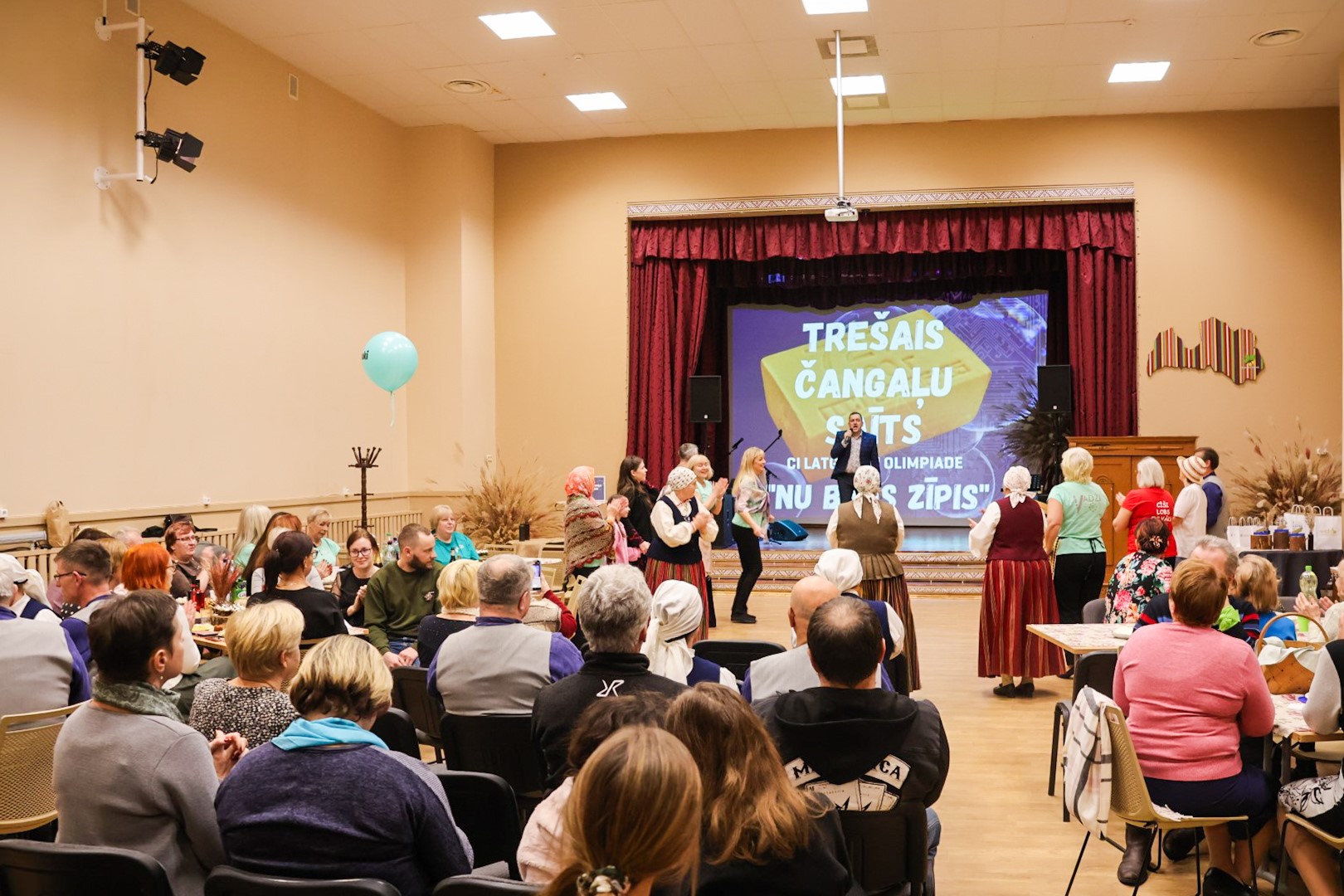 Pyrmais “Čangaļu saīts ci latgalīšu olimpiade” nūtyka 2020. godā, ūtrais 2024. godā i niu, 2025. godā, beja pasuokuma trešuo reize. Santa Ostaša stuosta, ka īprīškejā reizē pīsadalejušys 6 voi 7 komandys, bet itūreiz pīsasacejušys jau vasalys 10, tik pādejā breidī divejis vystik atkrytušys. Olimpiadis reikuotuoji aiz laika beja breidynuojuši, ka pasuokums, cikom komandys izpiļdeis vysus aizdavumus i pīdzeivuos organizatoru puorsteigumus, byušūt gars – suokšūtīs sešuos stuņdēs vokorā i byus vysmoz da 11 stuņžu vokorā. Santa soka, ka nu vīnys pusis ir prīceiga, ka daleibnīku palīkūt vaira, bet nu ūtrys – ari poša olimpiade leidza ar tū palīk garuoka. “Daīt puordzeivuot – kuram varbyut par garu, kuram juoskrīn, kuram transports i tai. Deļtuo itūgod afišā skaidri i gaiši nūruodejom, ka olimpiade byus gara – da vīnpadsmitu – i nadūmojit, ka palaissim dreižuok! Ka jau asam saguojuši kūpā, tod jau vajag tai rikteigi i pamateigi!” smejās olimpiadis idejis autore. Jei stuosta, ka itymā godā, gatavejūt aizdavumus, raudzejuse īsadzilinuot i izpieteit latgaliskū vysaiduos nūzarēs – viesturē, kulturā, politikā i cytur, kur viņ variejuse īsadūmuot. “Lelu daļu aizdavumu sastateju poša, bet tai kai latgalīšu volūda itūšaļt ir svāti naaizskarama raksteibys ziņā, tod aizdavumi ir izguojuši caur korektora rūkom, lai naizdareitu napareizi. Mums tautys nomā ir ari trokūs latgalīšu kūpīna, kas saīt breižūs, kod vajag sataiseit pruota vātru, kod ruodīs, ka ideju datryukst i vajag kaida cyta cylvāka redzīni. Itamā kūpīnā ir myusu folklorys kūpys “Zeiļa” damys, kulturys darbinīki, bārnuduorza vadeituoja, taipat ari bejušais pogosta puorvaļdis, niu Maltys apvīneibys puorvaļdis vadeituojs Edgars Blinovs. Mes saīmam kūpā, suocam daleitīs ar idejom, kotrys koč kū pasoka kluotyn, kotrys nazkū īsoka, i golā taidys lītys saīt! Tū vysu vokora gaitā var redzēt!” prīcojās Santa.