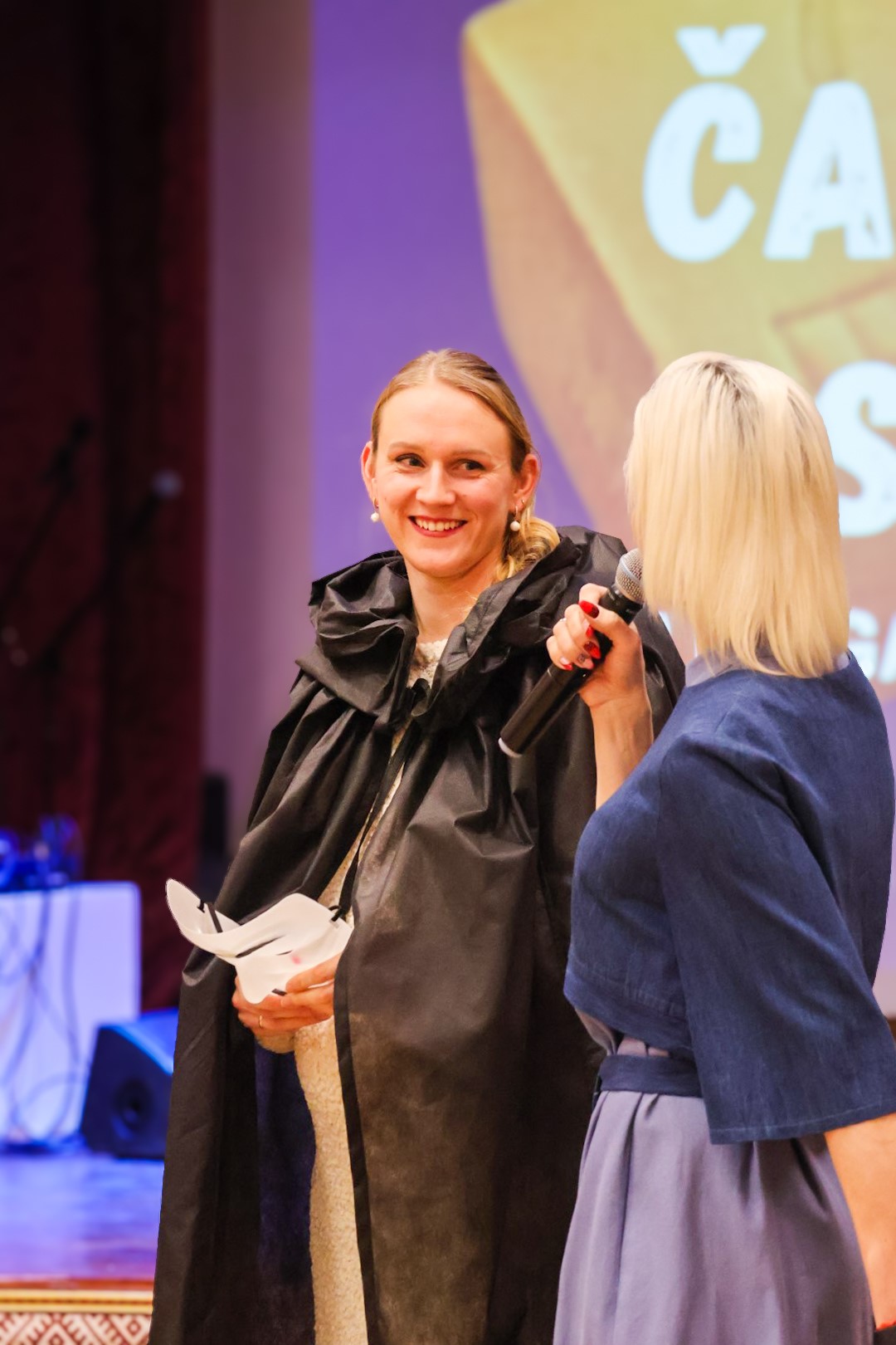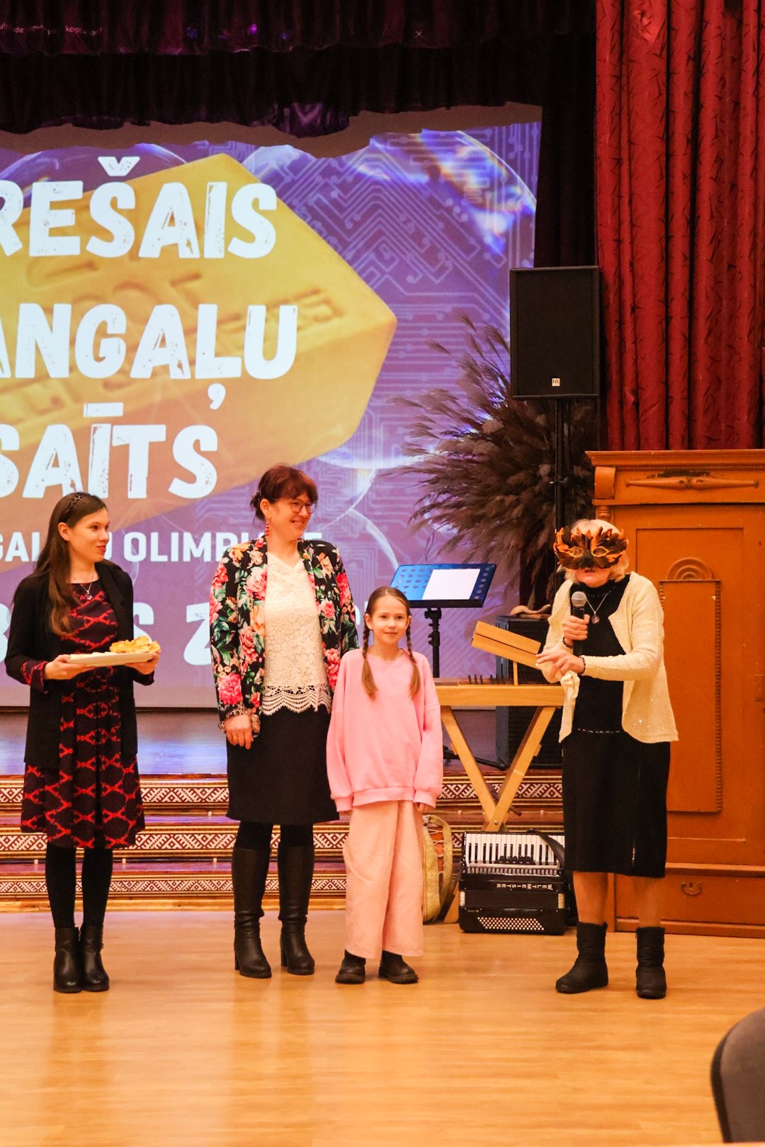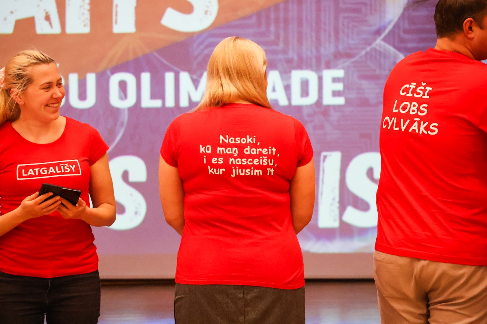 Ūtrū reizi olimpiadē pīsadaleja Līvija Smirnova (voi lobuok zynoma kai literate Līvija Līpdryvīte), kurei pārņ debitēja dekšuorīšu komandys vydā, bet itūgod sasprīduse salaseit poša sovu komandu i golā taišni jī – komanda “Mes nu…” – palykuši par 2025. gods olimpiadis čempionim. Kai nūsmej Līvija, tod apetite rūnūtīs ādūt. “Īpasatyka pasuokums i gribiejuos puorsalīcynuot, ka mes ari koč kū vaira varim, ka zynim latgaliskuos nūtikšonys, lītys i asam eistyni latgalīši,” jei soka, stuostūt, ka Rykovys komanda sovā ziņā beja apriekins – kotram bejuse kaida lūma, losūt komandu zynuojuse, iz kū kurs ir spiejeigs. “Kai maņ saceja Maruta Latkovska, te asūt paleidziejs muns garais pedagoga dorbs, spieja redzēt kura stypruos pusis, zynuot, kū nu kura sagaideit i “izmīgt”. Zynuoju meitinis, kas ir cīši lobi stuosteituoji, spiej sasmīdynuot sevkurā breidī, kotru nīceņu puorvērst par eistu stuostu, poša puorzynoju latgaliskuos nūtikšonys, tai tei komanda sasalaseja,” uzvarys strategeju atkluoj Līvija Smirnova, koč i pīzeist, ka pyrmuo vīta bejuse lels puorsteigums. “Cereibys i gribiešona byut lobuokam vysod ir, bet augšuok par trešū vītu dūmys nabeja, golvonais beja pīsadaleit. Gribiejuos paruodeit cytim, kuri nabeja vēļ bejuši, kas tei olimpiade taida ir, ka jei ir taida vīna jautra, forša, interesanta padareišona,” Līvija stuosta, pībiļstūt, ka komandai “Mes nu…” gryutuokais aizdavums ruodejīs pats pyrmais – atpazeit maskuos nūsaglobuojušūs cylvākus, kam navarējs redzēt, voi tei sīvīte, voi veirīts, bolsi puorveiduoti i leidzeigi pazeistamu cylvāku bolsim. Aiz masku beja nūsaglobuojuši žurejis lūcekli Gunta Vaičule, Gunārs Igaunis i Ināra Groce, bet juoatpazeist jī beja piec treis faktu. Vaicuota, voi byutu gotova pīsadaleit vēļ, Līvija puorlīcynūši soka, ka byutu, kam vēļ ir ļauds, kurim grybātu paruodeit olimpiadi, taipat juoturpynojūt ari latgaliskuo izzynuošona – olimpiadis aizdavumi nimoz naasūt vīnkuorši, atbiļdis varūt zynuot tod, ka ceņteigi i regulari sekoj leidza. Jei īsoka ari cytom komandom nasabeit, braukt pīsadaleit, labi pavadeit kūpā laiku i īsadvesmuot.