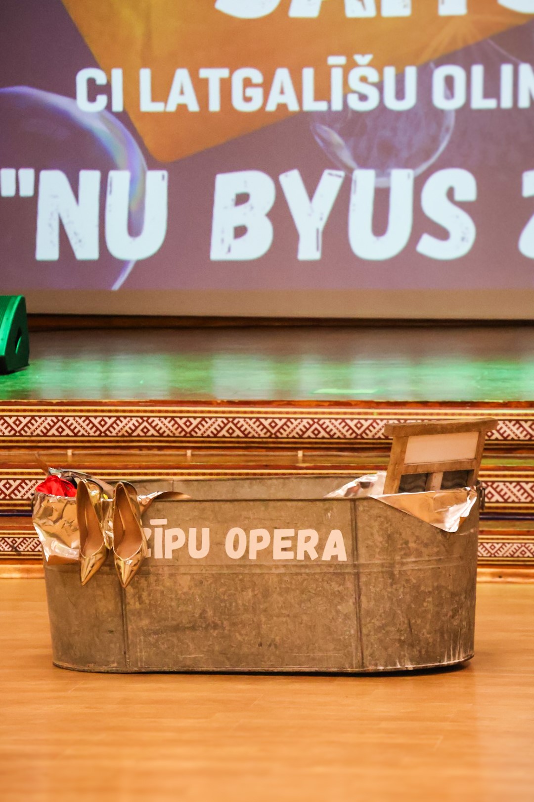 “Čangaļu saītā ci latgalīšu olimpiadē”, apsasmejūt par komandu stuosteitajom “zīpem” ap tāvam izdzartū veinu, gūvs nūdūšonu, Piertnīku dīnys puorprotumu, elektreibys skapī izrautajim vadenim velosipeda skrytuļu rūtuošonai i cytom nabyušonom, sarunys nūslāgumā apsavaicoju Santai pošai par juos nabyušonom, iz kū jei atsoka, ka ruodīs naasūt taida pasuokuma, kurs saītu bez kaidu puordzeivuojumu, “zīpis” regulari godūtīs. “Mes tikū ar Maltys apvīneibu kūpā taisejom taidu kolektivu atskaitis pasuokumu, kod vysi apvīneibys pošdarbeibys kolektivi kuope iz vīnys skotivis, prezentēja sovu pogostu. Es apsamauču īšonai iz skotivi, verūs iz leju – vīna kūrpe taida, ūtrei taida. Da Ūzulainis pogosta, kur dzeivoju, patuoli, tiuleņ pasuokumam juosasuoc, bet saprūti, ka dažaidys kūrpis kuojuos, kū niu dareit? Juosadraudzej otkon ar pošapziņu, juoīt, kai ir. Smejūs, ka kulturys ļauds jau ir taidi, kurus na vysod nūpītni iztver, redzēs, ka ar divejom dažaidom kūrpem kuojuos, padūmuos, ka muokslinīks. Nu i labi, cylvākim byus, par kū parunuot. Taipat pyrmajā Rēzeknis nūvoda kulturys goda bolvā gadejuos lobs kuriozs. Feimaņu kulturys nomā skateituoju ryndys ir ar taidu sleipumu, mani izsauc kuopt iz skotivis, kai kuopu iz pyrmuo augšejuo pakuopīņa, tai da pošai lejai nūbrauču. Vysa zāle īvylka elpu, bet es pa tū laiku, cikom brauču lejā, puordūmuoju vysu dzeivi! Koč i tuos beja tik divejis sekuņdis. Nūkrytu, pīsazemieju kai taida vabale ar kuojom gaisā. Vysi iz mane verās. Dūmoju, kai pīsaceļt. Salyku kūrpeitis, ceļšūs poša, pīsacieļu, īkuopu atpakaļ kūrpēs i pyrmuo fraze, kas kai aizsargreakceja izguoja, beja: “Nu navaru es bez šova!”. Vysa zāle izelpuoja, saprota, ka asu dzeiva, pasasmēja. Saprūti, ka kai saguoja, tai saguoja. Lobuokais, ka obeji itī gadīni beja vīnā i tymā pošā kulturys nomā ar vīnom i tom pošom kūrpem! Deļtuo vajag itaiduos olimpiadēs pīsadaleit, sasatikt, izstuosteit sovys “zīpis”, pasasmīt kūpā, lai ir spāks i prīca dzeivuot tuoļuok!” nūsmaida Santa.