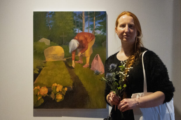 Taipoš izstuodē ir radzama ari Gitys Palmys glezna “Kapiņu kopēja”. Gita ir nu Preiļu nūvoda, struodoj Roberta Mūka muzejā i kasdīnā aizrauteigai gleznoj. Muokslys cīneituoji vaira jū zyna kai viļcīņu meitini, kam sovūs dorbūs Gita pīsavierš viļcīņu, dzeļžaceļa i staceju atainuošonai, tok itūreiz gleznā ir juos taņte.