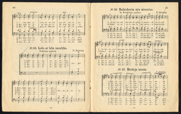 Bibliotekā globojās latgalīšu lyugšonu gruomateņa “Dzeivō Rožancu” (1909, Viļņa), kai ari divejis latgalīšu folklorys gruomotys: “Myusu tautas teikas un posokas” 1. daļa (sakūpuojs “Draugs”, 1908, Leivuons) i “Tautas dzismu, posoku, meikļu un parunu woceleite” (sakruojs P. Smelters, 1899, Reiga), kura ir ar naatšifrātu autografu, adresi i datiejumu (1902) iz vuoka. “Tautas dzismu, posoku, meikļu un parunu woceleitē” ar zeimuli ir atzeimuotys, pastreipuotys daudzys parunys i dažys meiklis, pīmāram, “Tāws augsts, mote zama, broļs troks, meita okla (Debess, zeme, wējs, nakts)”. Voi dažys gruomotā atzeimuotuos parunys: “Durakam un kule par zwonu”, “Klus, putra, lai runoj ādoji”, “Wacs cilwāks, kumeļa prots”, “Wiss nu Diva, tik wilks nu walna”.