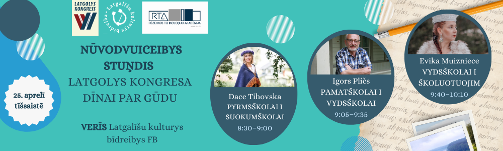 Vīna nu Latgolys kongresa dīnai veļteitūs tradiceju ir nūvodvuiceibys stuņdis, kuruos kaidi sabīdreibā zynomi ļauds vysaidu vacumu klašu grupom pīduovoj ar Latgolu i juos personeibom saisteitus tematus. Itūgod pyrmškolys i suokumškolys vacumam nu 8.30 da 9.00 školuotuoja i dzīdūšuos Tihovsku saimis puorstuove Dace Tihovska pīduovuos nūvodvuiceibys stuņdi “Skaņu pasauļs”, nu 9.05 da 9.35 ar pamatškolāni i vydsškolāni fotografa i nūvodpietnīka Igora Pliča stuostā varēs vaira izzynuot ap fotografiešonys viesturi Latgolā i fotografu Juoni Gleizdu, bet nu 9.40 da 10.10 vydškolānim žurnaliste i školuotuoja Evika Muizniece stuosteis ap boltajim laukumim Latgolys viesturē i Latgolys kongresa dīnu. Nūvodvuiceibys stuņdis, pīsaslādzūt nu sevkurys vītys pasaulī, varēs vērtīs Latgolys kongresa YouTube kanalā i Latgalīšu kulturys bīdreibys lopā socialajā teiklā Facebook.